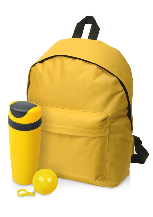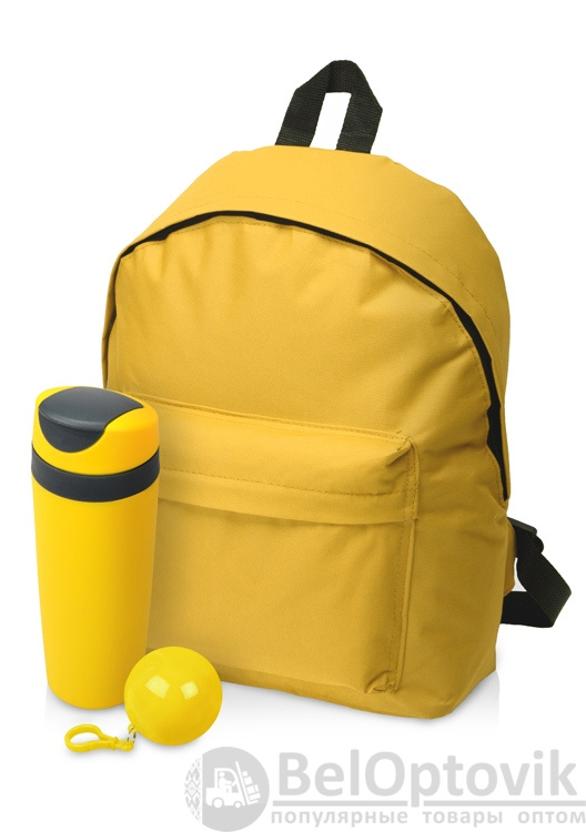 - Комплектность: рюкзак, термокружка 450 мл, дождевик