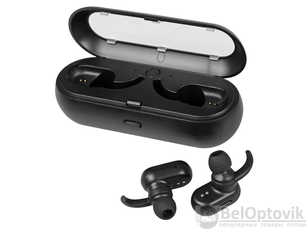 - Комплектность: 2 беспроводных наушника, зарядная станция, чехол, кабель micro-USB, амбушюры- 3 пары, инструкция