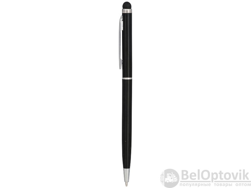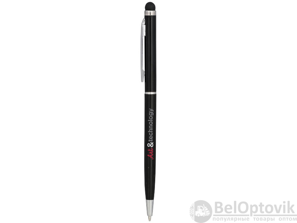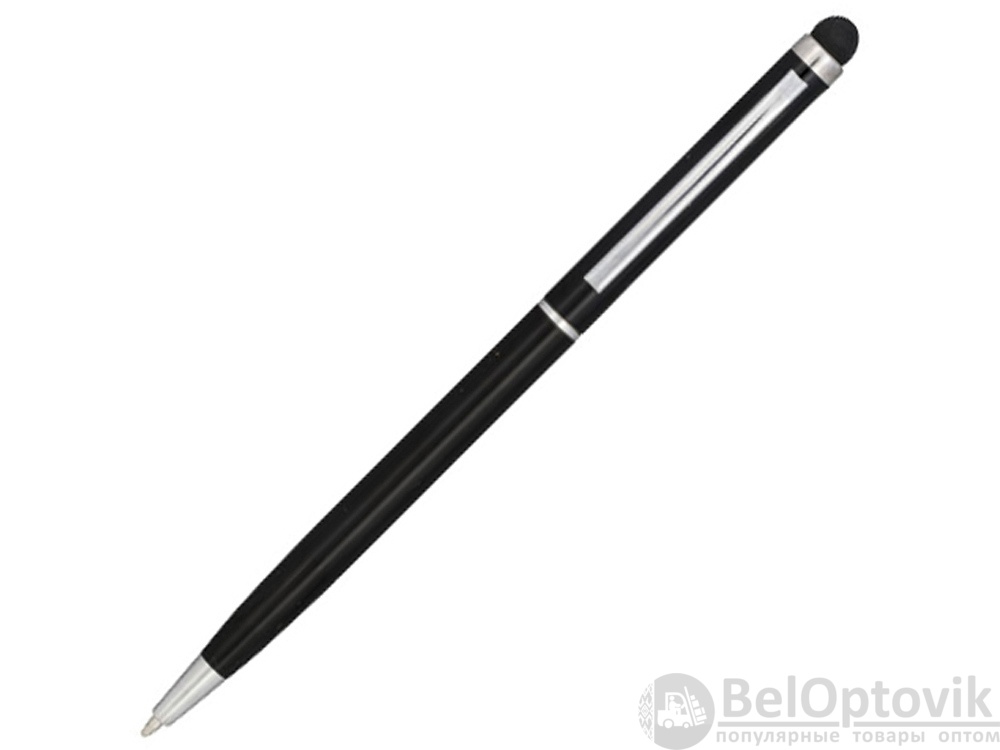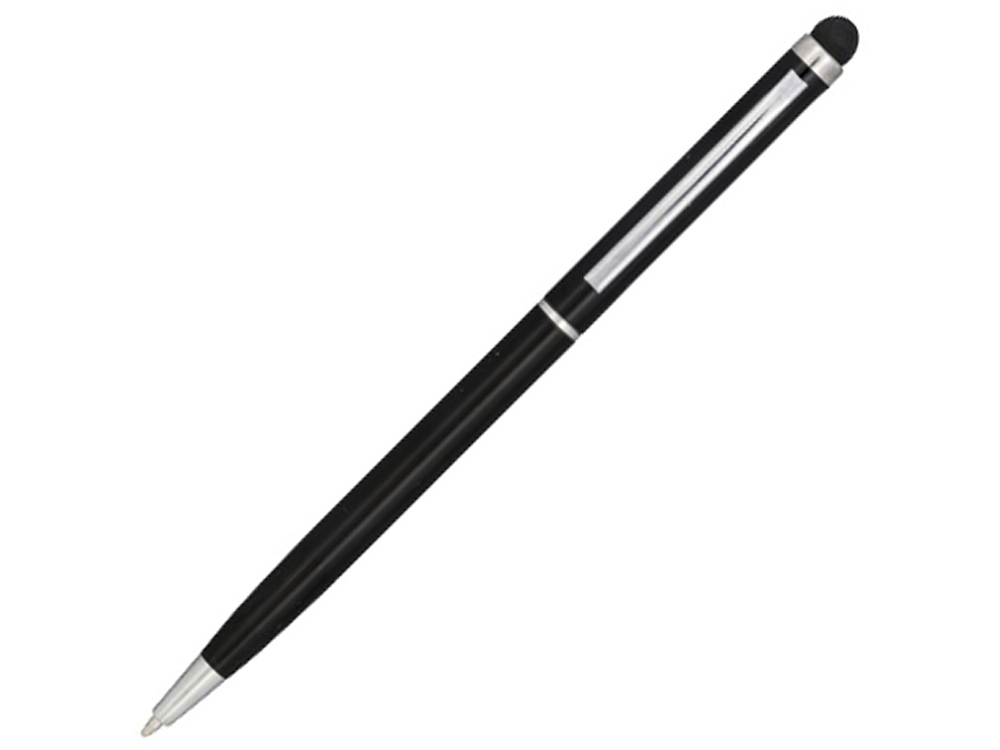 Алюминиевая шариковая ручка Joyce. Тонкая алюминиевая шариковая ручка с поворотным механизмом и стилусом. Алюминиевый корпус с металлическим зажимом и кольцом посередине, остальные элементы из пластика.