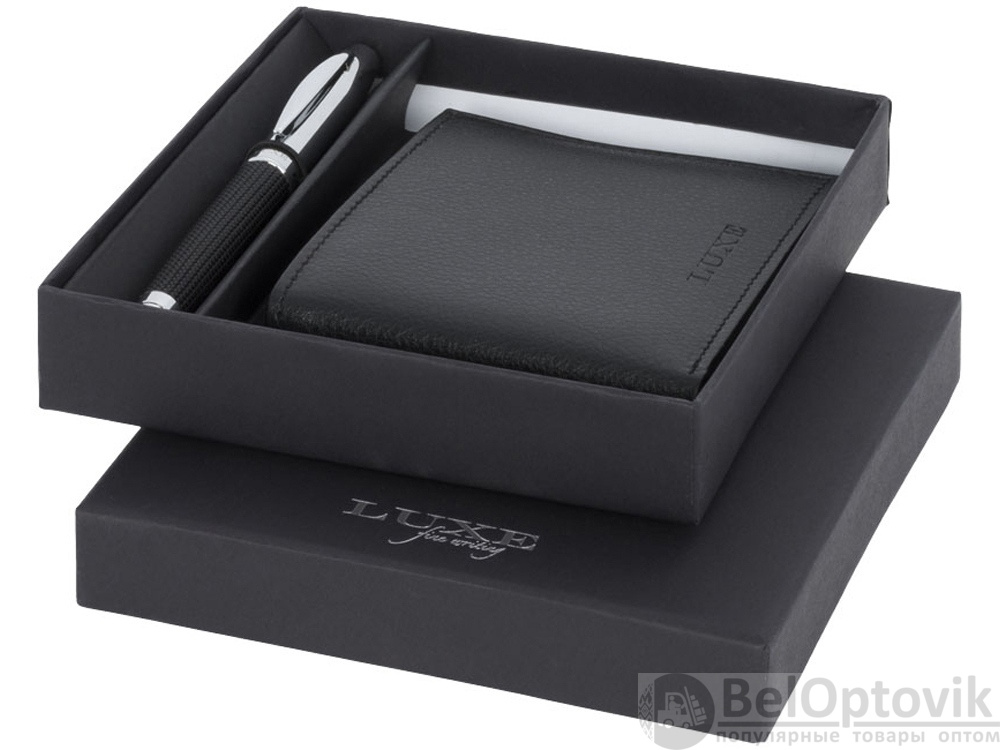 Подарочный набор из шариковой ручки и кошелька. Два необходимых предмета в одном стильном подарочном наборе. Шариковая ручка с кожаным покрытием с бумажником. Эксклюзивный дизайн. Предлагается в подарочной коробке LUXE. Металл и искусственная кожа.