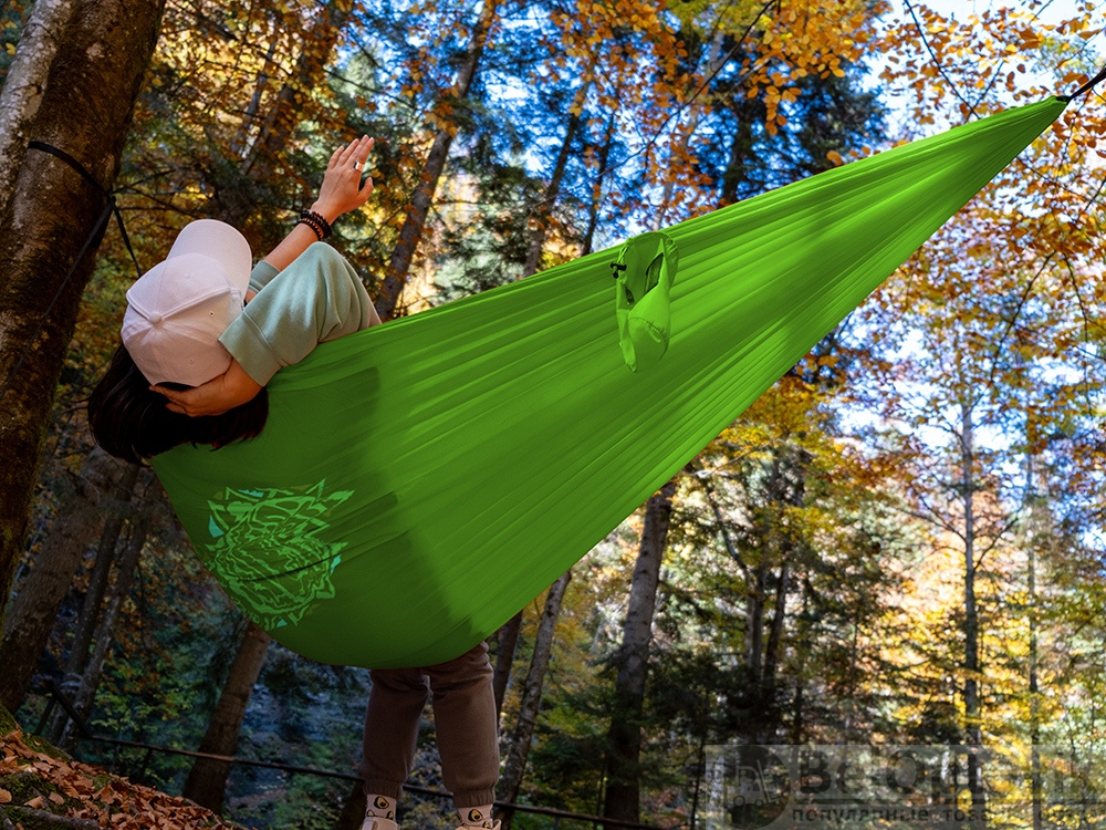 - комплектация: 4 колышка, 2 карабина, 2 веревки, чехол и гамак