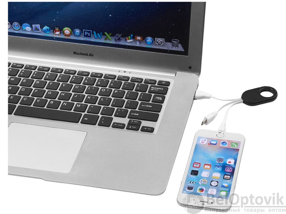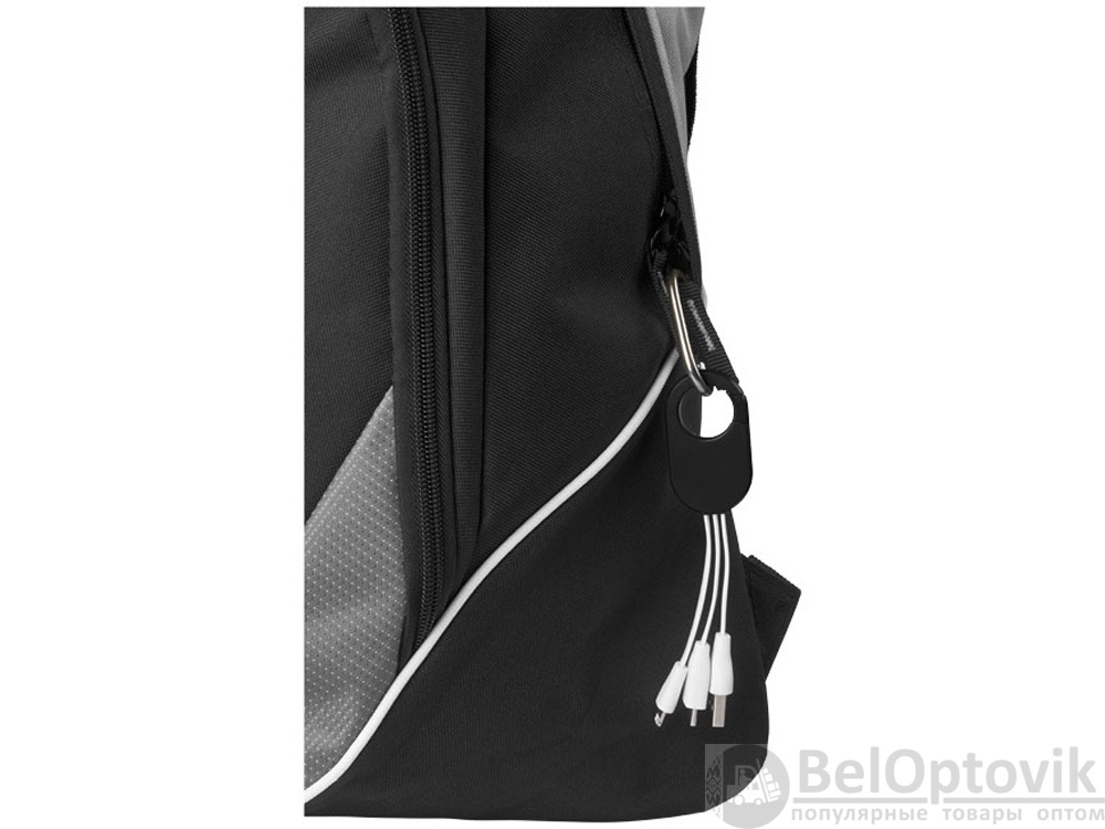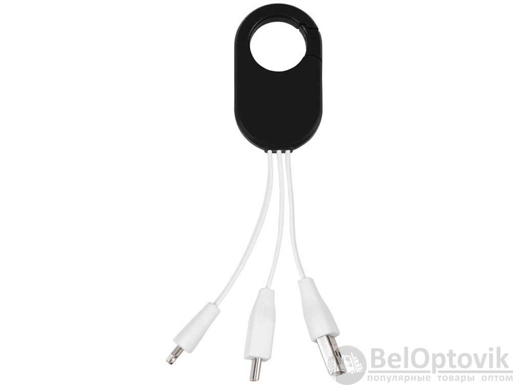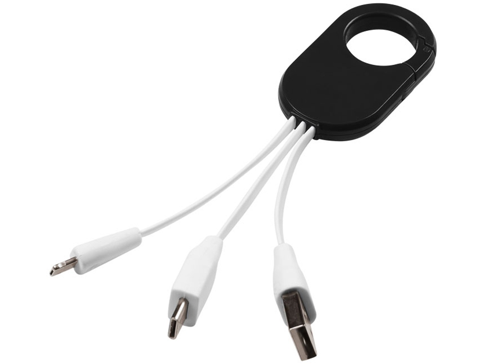 Кабель для зарядки «3-в-1». Кабель для зарядки Troop «3-в-1» с коннектором USB Type C и двойным совместимым коннектором «2-в-1» для устройств Apple® iOS и Android. Кабель оснащен карабином для удобного крепления к сумке. АБС-пластик.