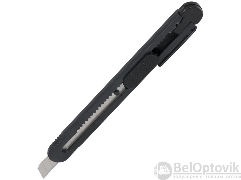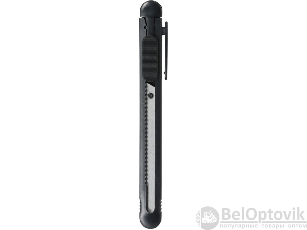 Универсальный нож с выдвижным сменным лезвием 80x9 мм, с 12 сегментами. Встроенный инструмент для замены лезвия и зажим для крепления к карману. ПС-пластик.