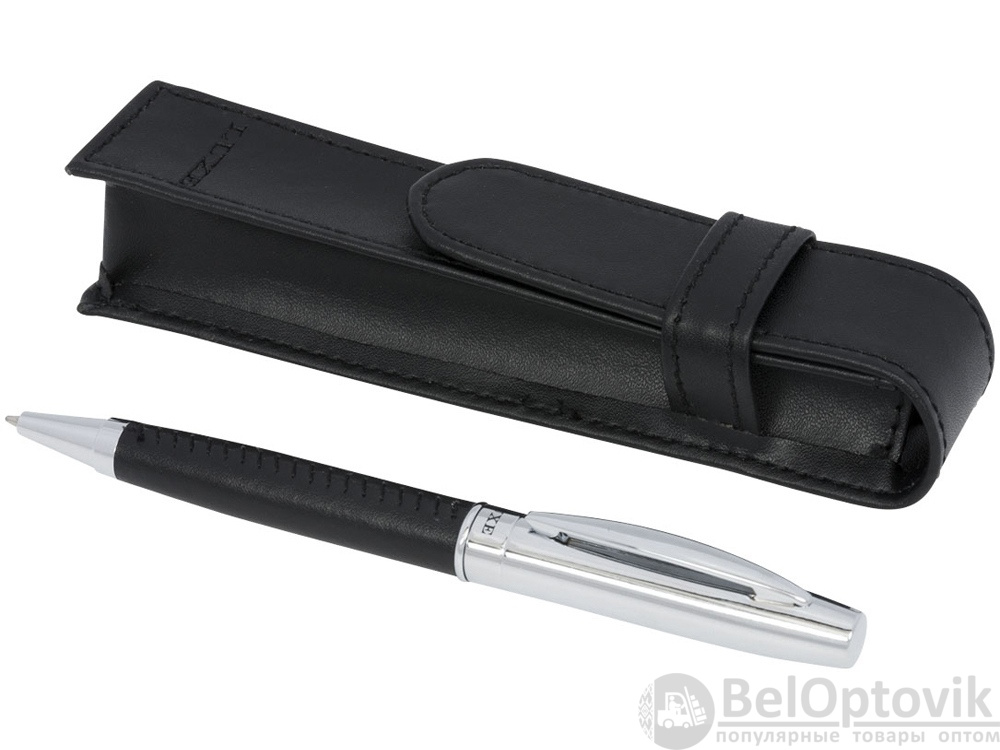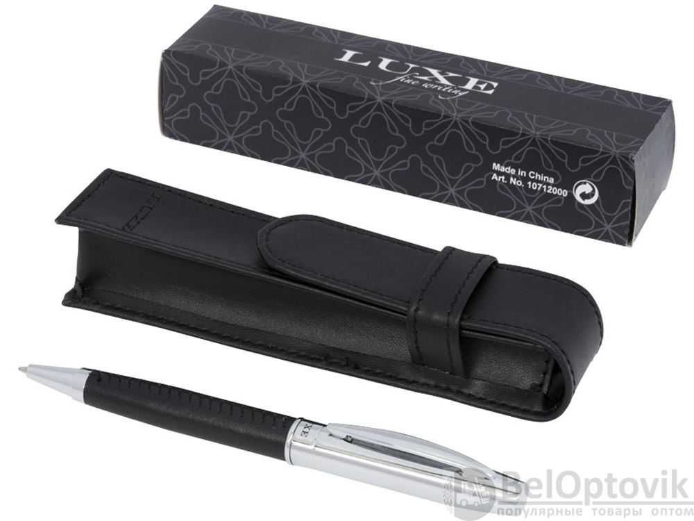 Подарочный набор «Scherzo». Эксклюзивная шариковая ручка с обтянутым кожаным материалом корпусом и чехлом из искусственной кожи, упакованная в подарочную коробку «LUXE». Металл и искусственная кожа.