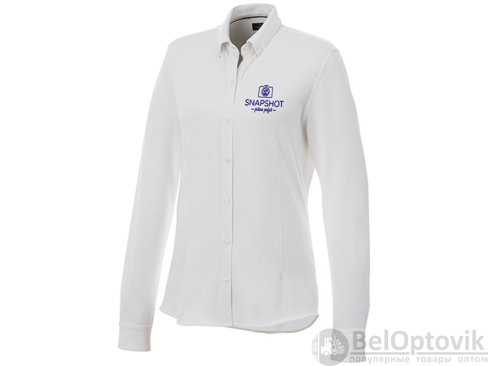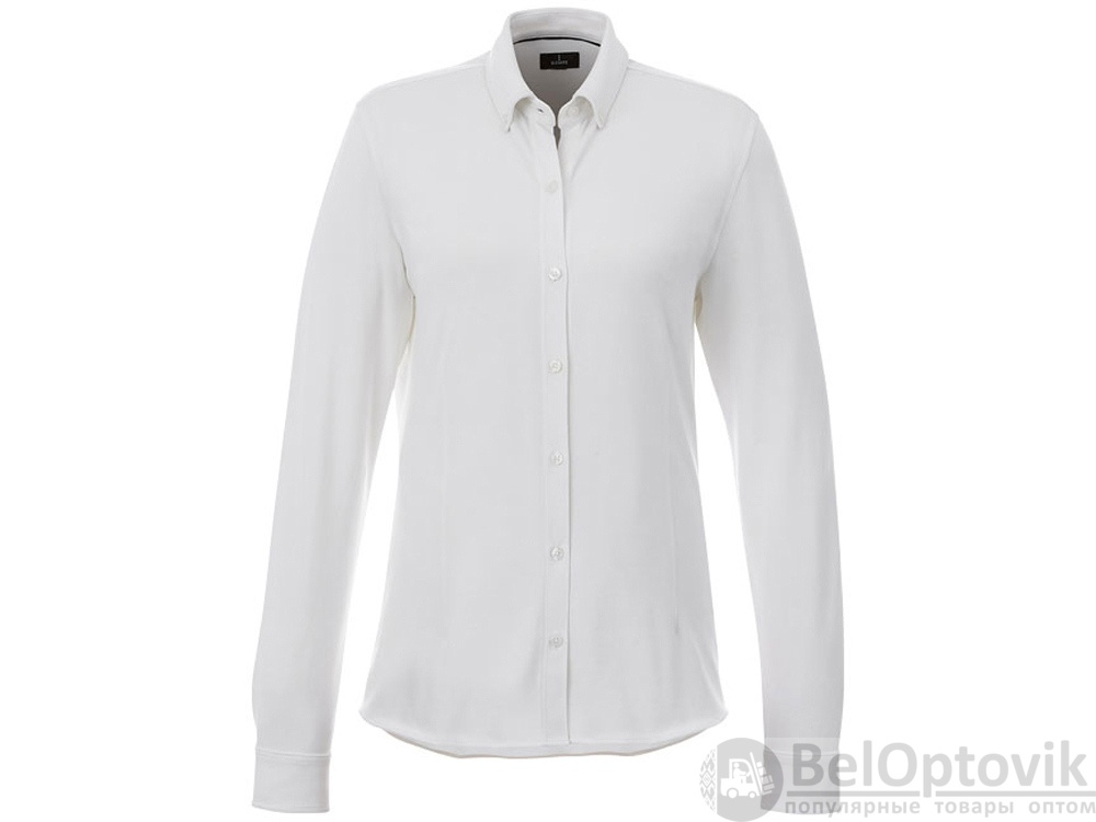 Женская рубашка Bigelow из пике с длинным рукавом. Воротник из ткани изделия. Стрейтч-ткань. Регулируемый манжет на одной пуговице. Воротник на пуговицах. Швы моделирующие фигуру и приталенный крой. Атласная окантовка внутренней части горловины. Гравированные пуговицы в цвет изделия. Тканая метка. Двойное трикотажное пике, 95% хлопок и 5% эластан. 200 г/м².
