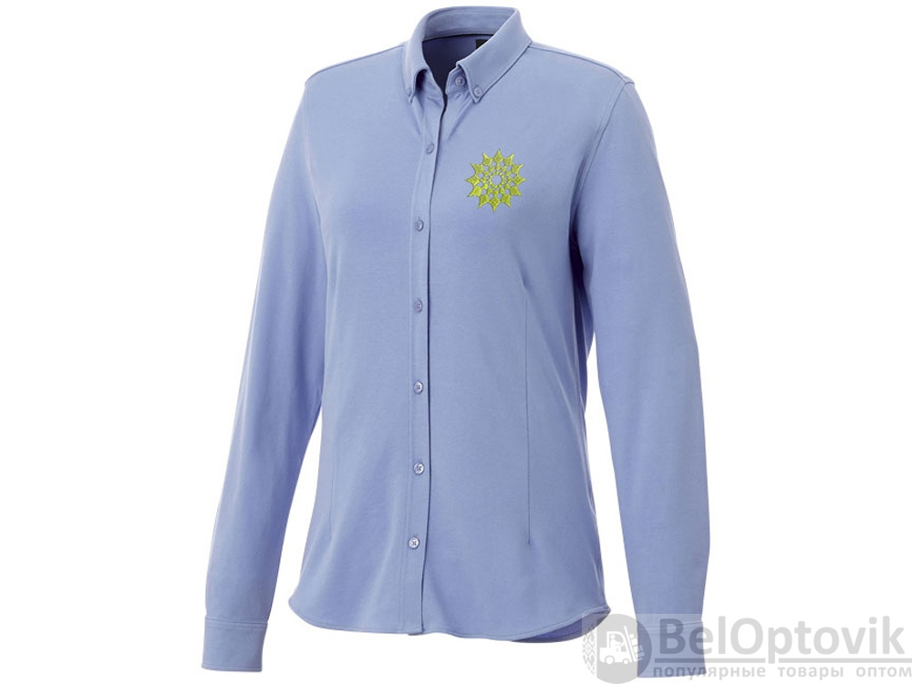 Женская рубашка Bigelow из пике с длинным рукавом. Воротник из ткани изделия. Стрейтч-ткань. Регулируемый манжет на одной пуговице. Воротник на пуговицах. Швы моделирующие фигуру и приталенный крой. Атласная окантовка внутренней части горловины. Гравированные пуговицы в цвет изделия. Тканая метка. Двойное трикотажное пике, 95% хлопок и 5% эластан. 200 г/м².