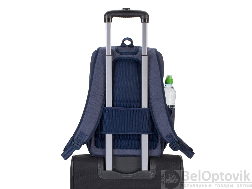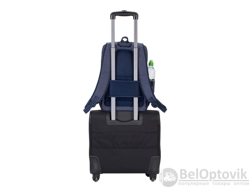 • На задней стенке имеется ремень крепления к багажной сумке и скрытый карман на молнии для паспорта, бумажника.