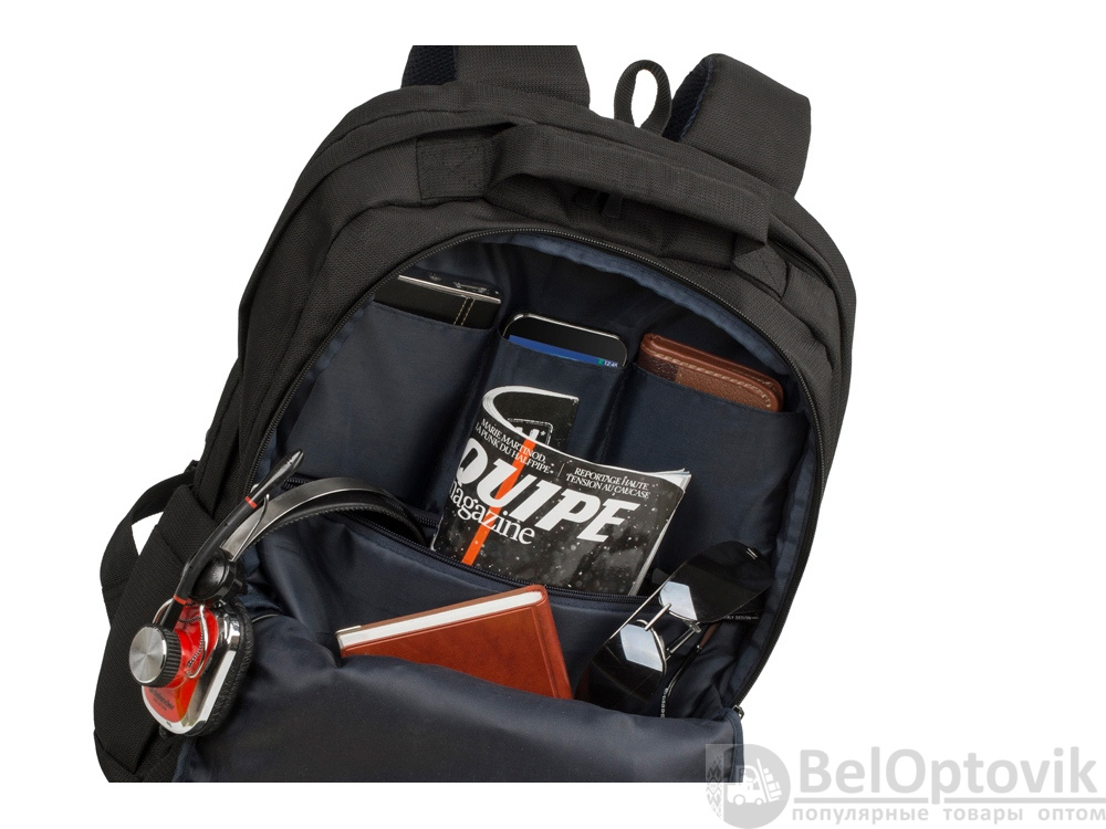 • Основное отделение для ноутбука с вертикальной загрузкой, имеет мягкие стенки и ремень для надежной фиксации ноутбука до 17.