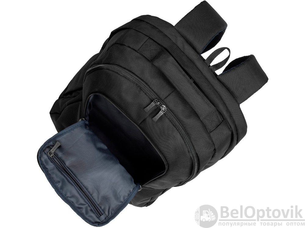 • Два внешних передних кармана на молнии. Один для хранения аксессуаров, зарядного устройства. Второй оборудован панелью-органайзером для хранения визитных карт, авторучек, смартфона.