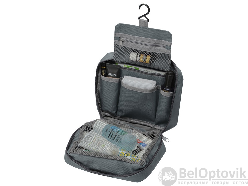 • Вместительное пространство с двумя большими отделениями и несколькими карманами дает возможность эргономично распределить весь дорожный арсенал косметических и туалетных принадлежностей.