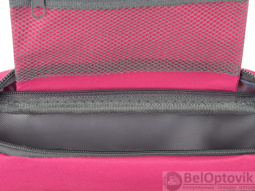 • Вместительное пространство с двумя большими отделениями и несколькими карманами дает возможность эргономично распределить весь дорожный арсенал косметических и туалетных принадлежностей.