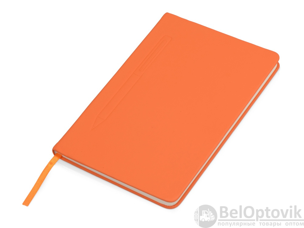 Блокнот формата А5 в твердой обложке со скруглёнными углами и блоком в линейку на 80 листов. Благодаря скрытой магнитной ленте на блокноте можно легко и надежно закрепить металлическую ручку. Зона с магнитом обозначена тиснением в форме ручки.