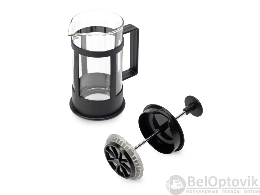 Этот кухонный прибор имеет плотно прилегающую пластиковую крышку, поршень из нержавеющей стали и пресс-фильтр с уплотнительным кольцом из пластика для отделения чайных листьев от воды.