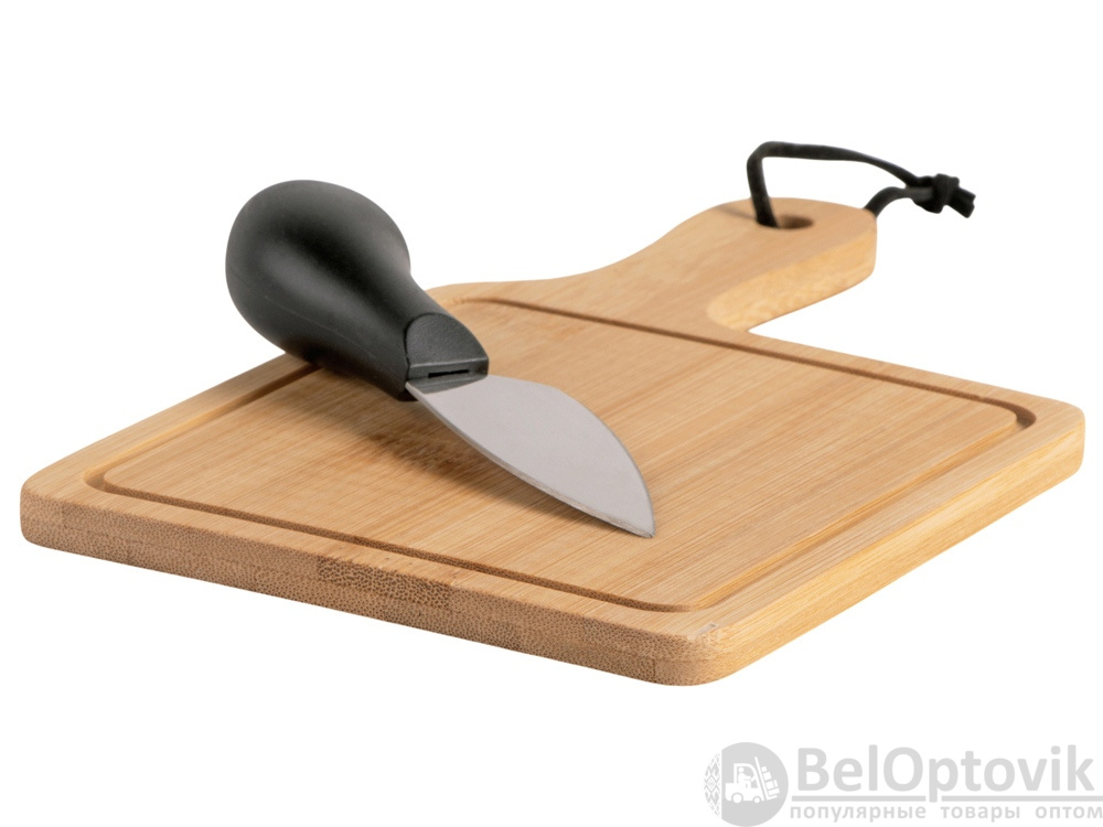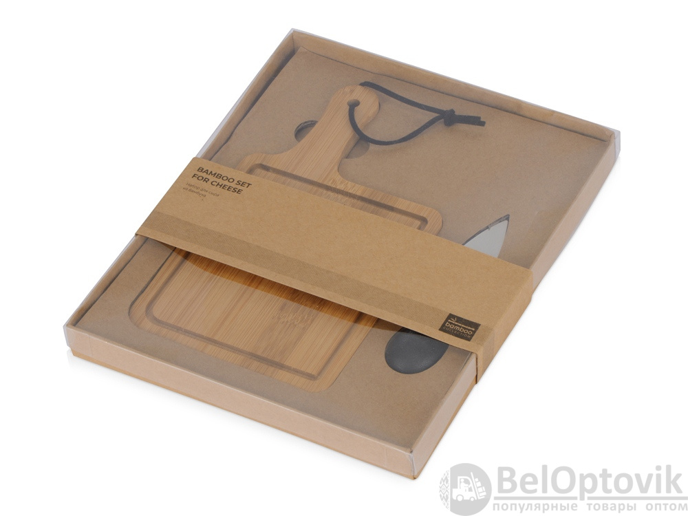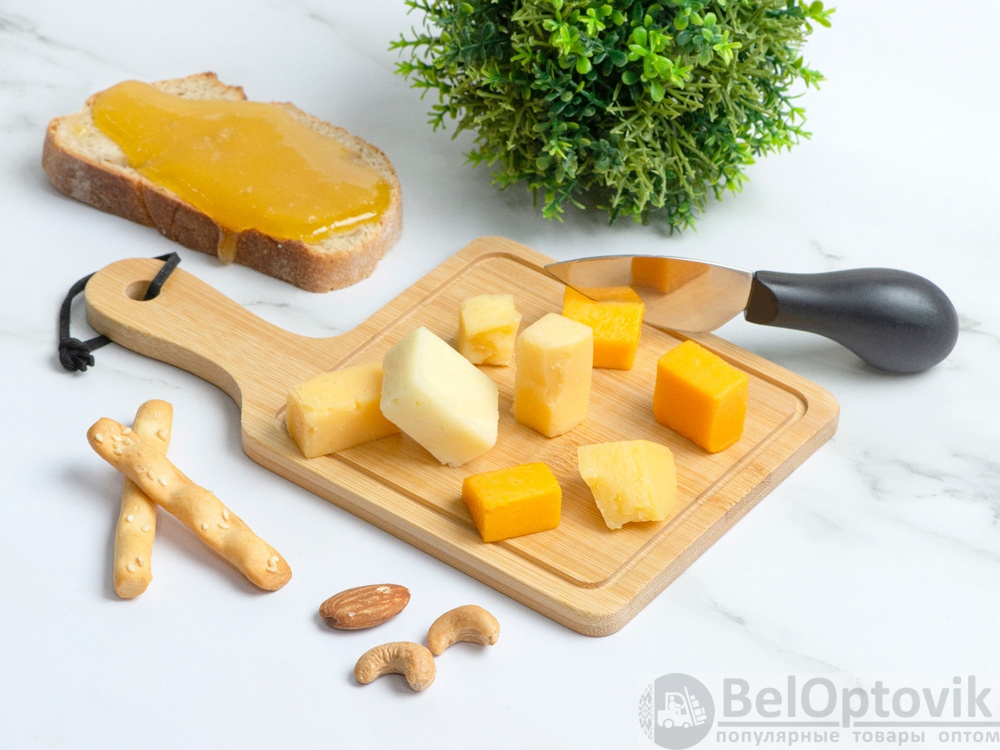 Набор для сыра состоит из небольшой доски и ножа - с их помощью можно красиво подать любую закуску. Для производства доски используется натуральный бамбук, а нож выполнен с использованием высококачественной нержавеющей стали.