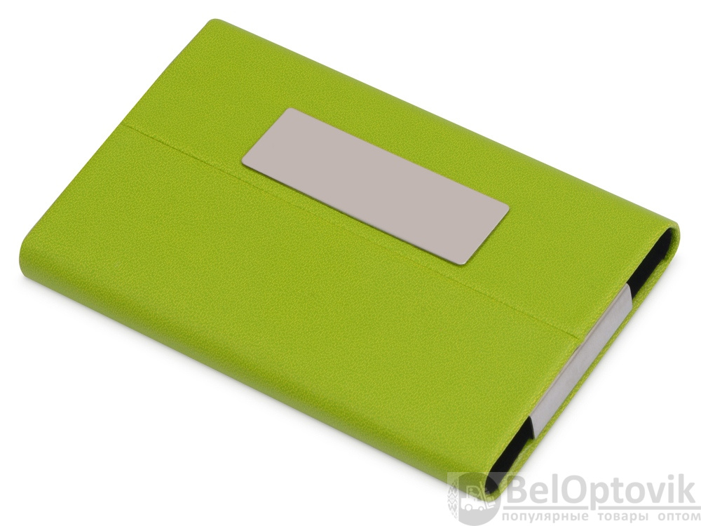 Компактная и легкая визитница выполнена в сочных цветах. Логотип можно нанести на металлическом шильде или на поверхности из искусственной кожи. Вмещает примерно 20 визиток.