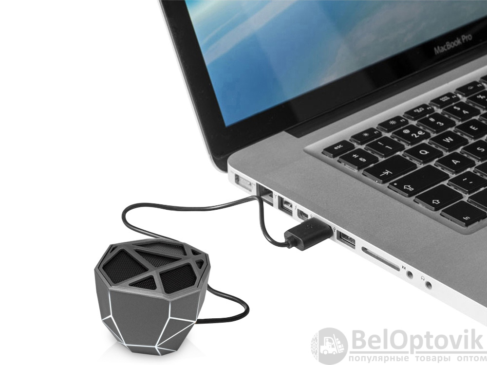 Беспроводной портативный динамик «Geo» — ультрасовременное решение для прослушивания аудио с функцией расширенных басов. Дизайн колонки выполнен в стиле low-poly, главная особенность которого — необычная геометрия форм. Визуальный эффект усиливается одноцветной подсветкой колонки, яркость которой меняется в зависимости от интенсивности звука.