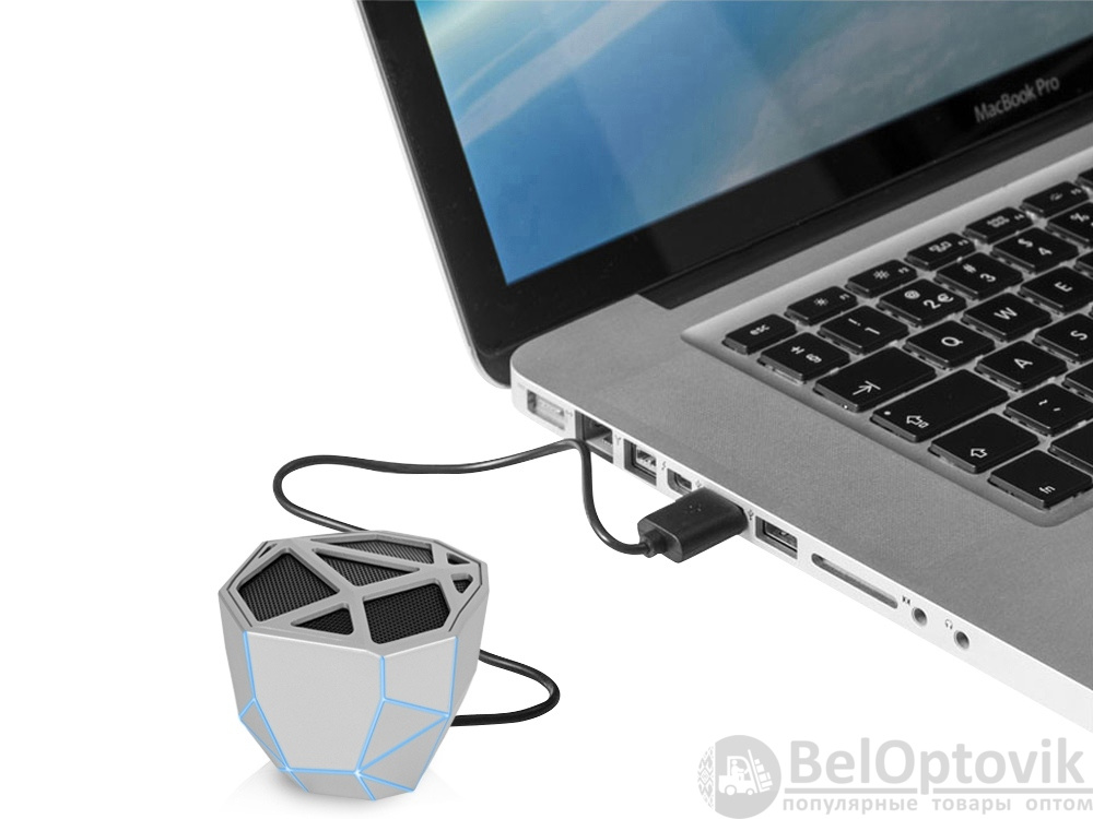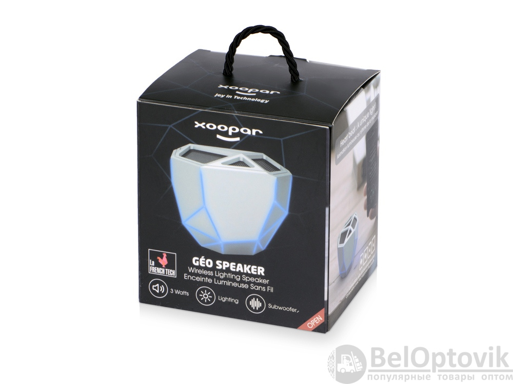 Беспроводной портативный динамик «Geo» — ультрасовременное решение для прослушивания аудио с функцией расширенных басов. Дизайн колонки выполнен в стиле low-poly, главная особенность которого — необычная геометрия форм. Визуальный эффект усиливается одноцветной подсветкой колонки, яркость которой меняется в зависимости от интенсивности звука.