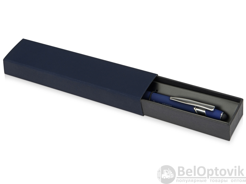 Футляр для ручки станет практичным дополнением бизнес-подарка. Основа изготовлена из плотного высококачественного картона, чехол каширован матовым материалом софт-тач, имитирующим натуральную кожу. Пишущий инструмент закрепляется с помощью резинки на пластиковом ложементе.