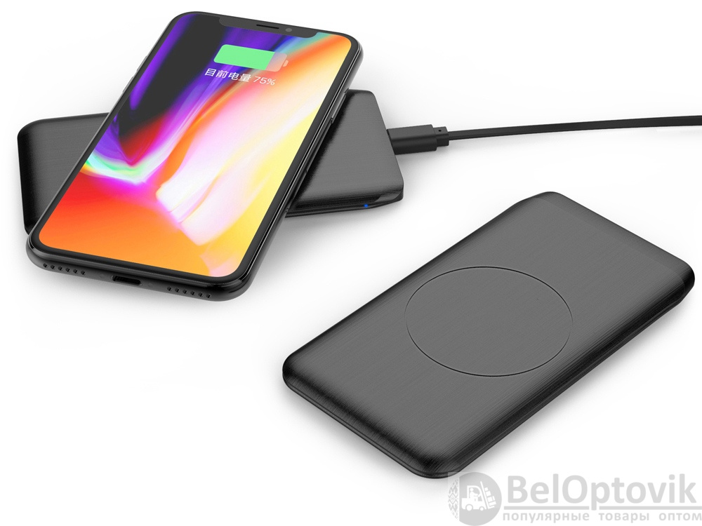 Ультратонкое беспроводное зарядное устройство. Легко умещается в кармане. Просто подключите его к любому источнику питания USB и положите ваш QI-совместимый смартфон заряжаться. Не имеет кнопок, не требует никаких дополнительных действий.