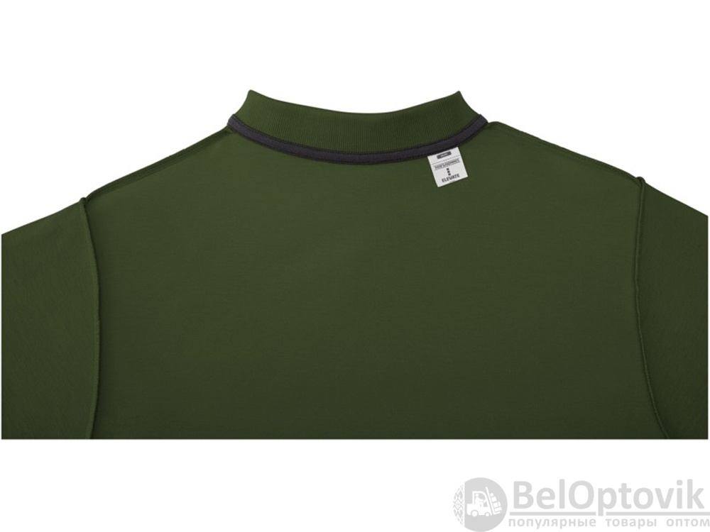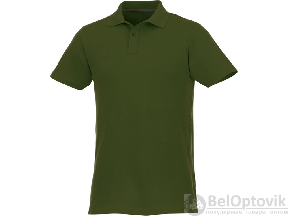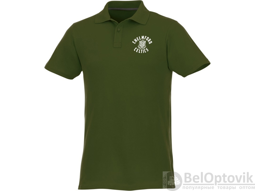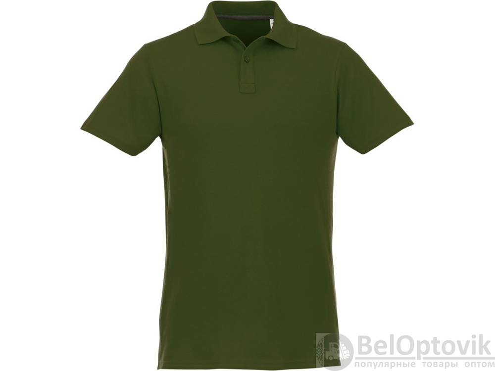 Мужское поло Helios с коротким рукавом. Отрезной-отрывной ярлык для комфорта. Воротник гладкой вязкой в рубчик. Планка с двумя пуговицами. Двойная строчка на воротнике и внизу изделия. Пуговицы в цвет изделия. Полоска на горловине в контрастном цвете. Трикотаж Piqué, 100 % хлопок. 180 г/м².