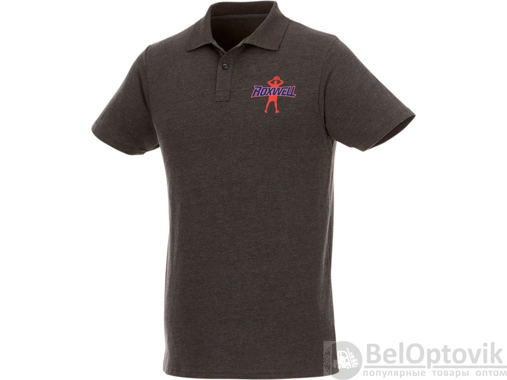 Мужское поло Helios с коротким рукавом. Отрезной-отрывной ярлык для комфорта. Воротник гладкой вязкой в рубчик. Планка с двумя пуговицами. Двойная строчка на воротнике и внизу изделия. Пуговицы в цвет изделия. Полоска на горловине в контрастном цвете. Трикотаж Piqué, 60% хлопок, 40% полиэстер. 180 г/м².