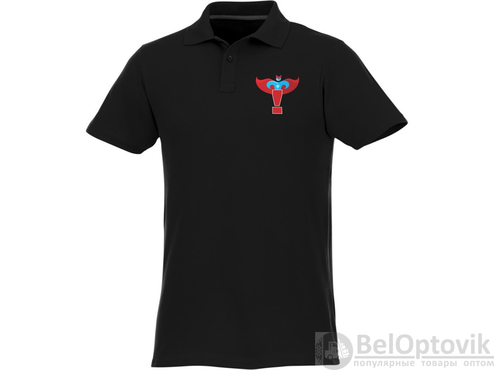 Мужское поло Helios с коротким рукавом. Отрезной-отрывной ярлык для комфорта. Воротник гладкой вязкой в рубчик. Планка с двумя пуговицами. Двойная строчка на воротнике и внизу изделия. Пуговицы в цвет изделия. Полоска на горловине в контрастном цвете. Трикотаж Piqué, 100 % хлопок. 180 г/м².