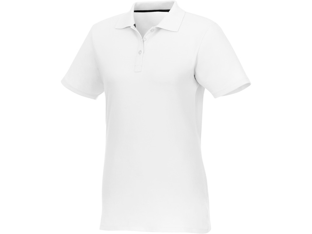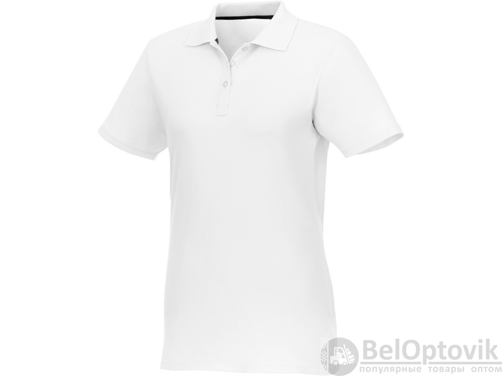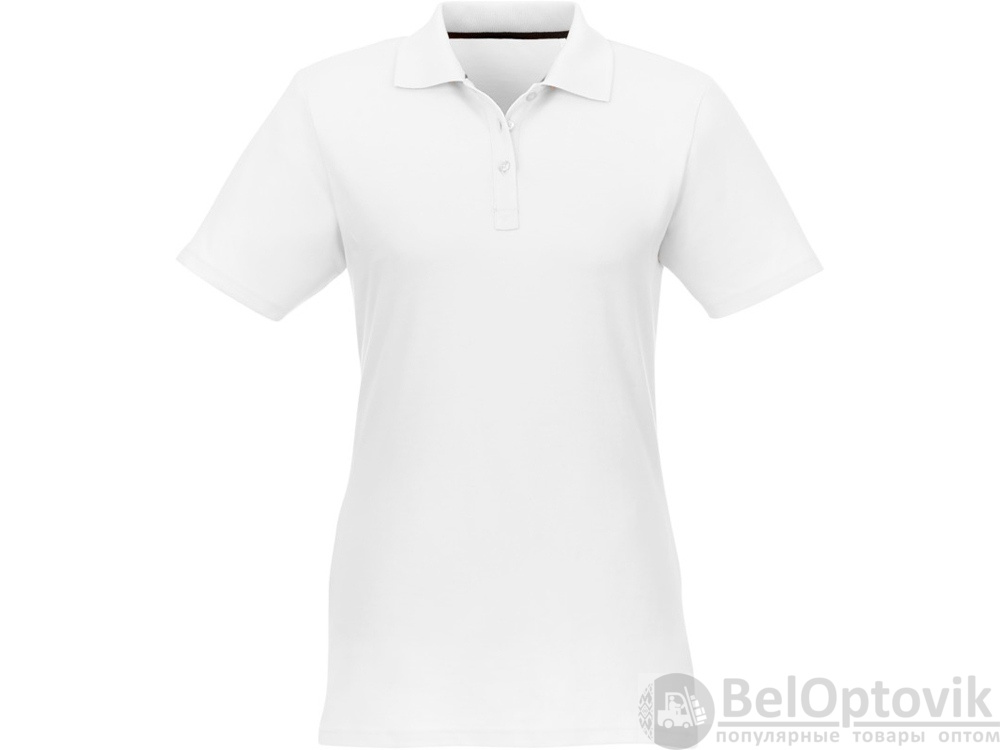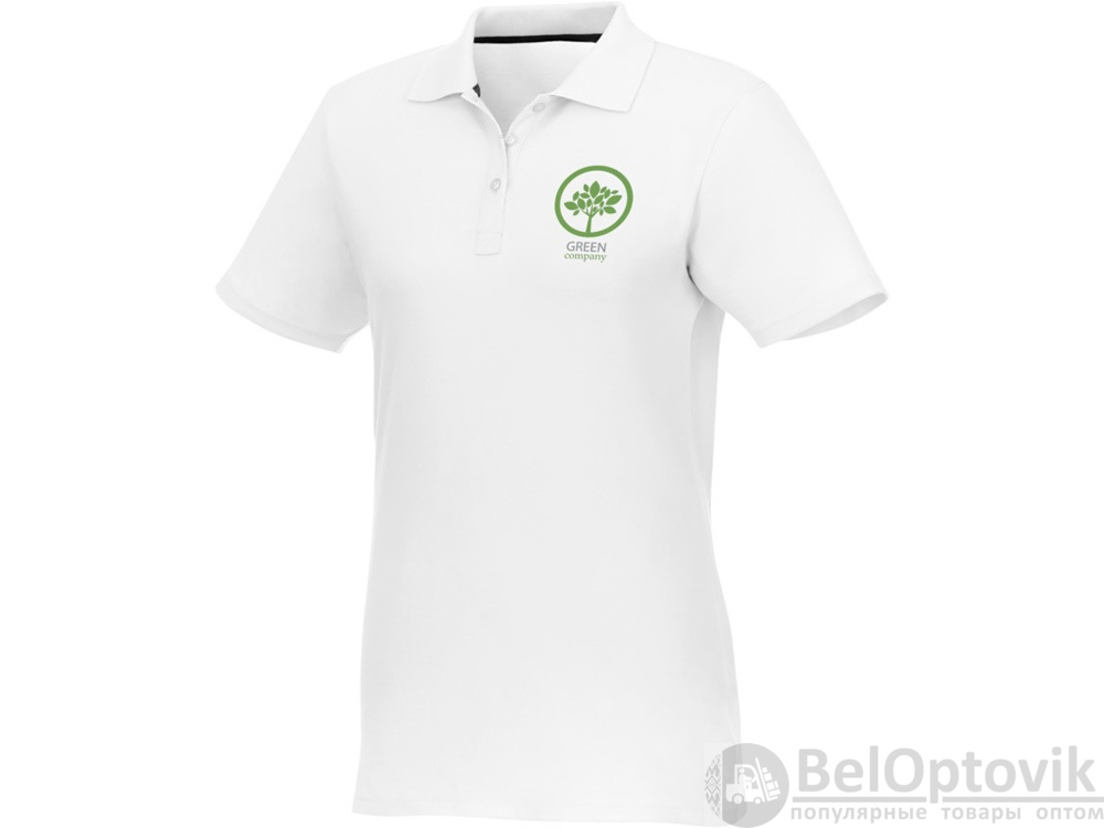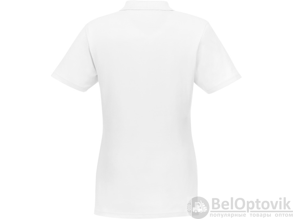 Женское поло Helios с коротким рукавом. Женская модель с разрезами по бокам. Отрезной-отрывной ярлык для комфорта. Воротник гладкой вязкой в рубчик. Планка с тремя пуговицами. Двойная строчка на воротнике и внизу изделия. Пуговицы в цвет изделия. Полоска на горловине в контрастном цвете. Трикотаж Piqué, 100 % хлопок. 180 г/м².