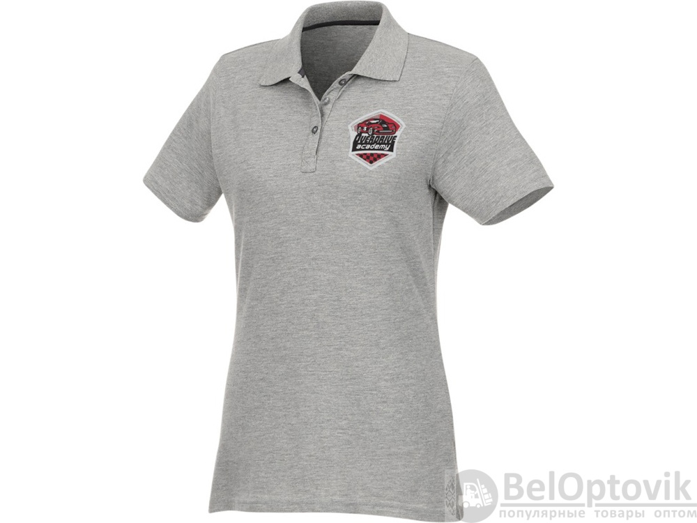 Женское поло Helios с коротким рукавом. Женская модель с разрезами по бокам. Отрезной-отрывной ярлык для комфорта. Воротник гладкой вязкой в рубчик. Планка с тремя пуговицами. Двойная строчка на воротнике и внизу изделия. Пуговицы в цвет изделия. Полоска на горловине в контрастном цвете. Трикотаж Piqué, 90 % хлопок, 10% вискоза. 180 г/м².