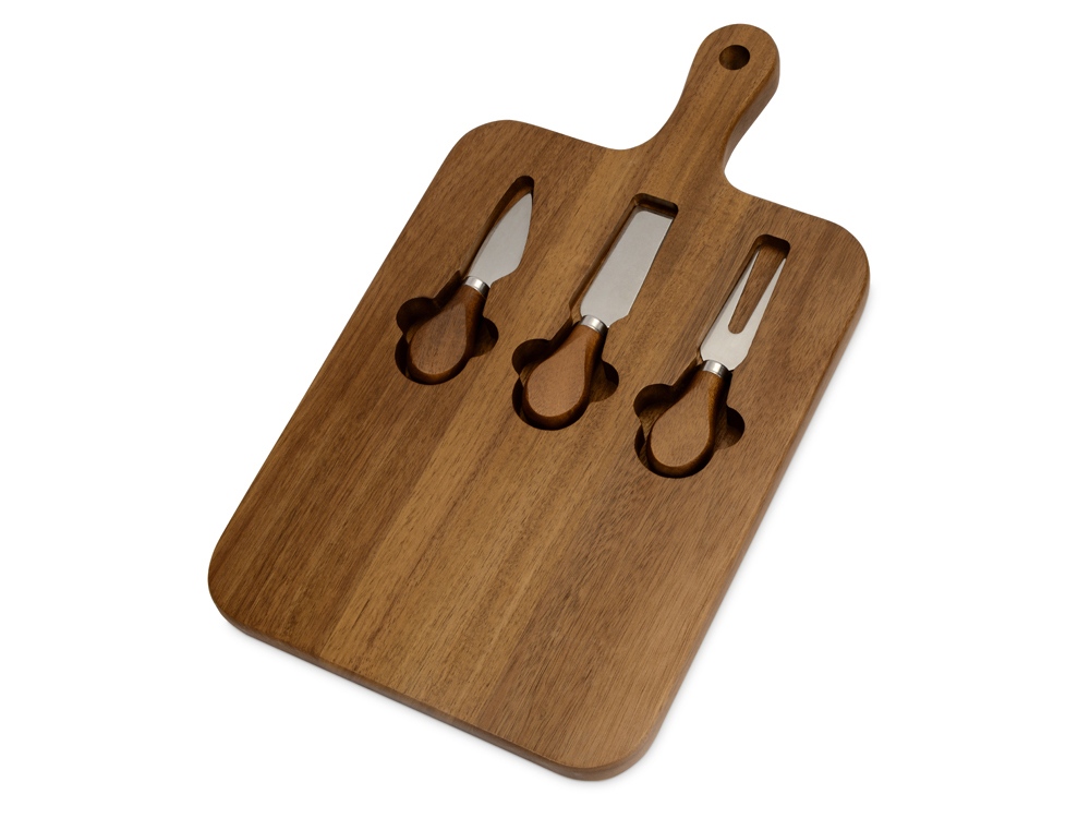 Набор состоит из доски, двух ножей и вилки для сыра.