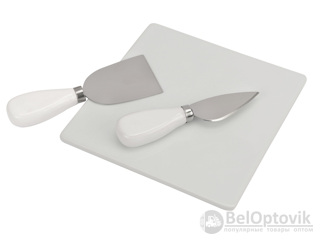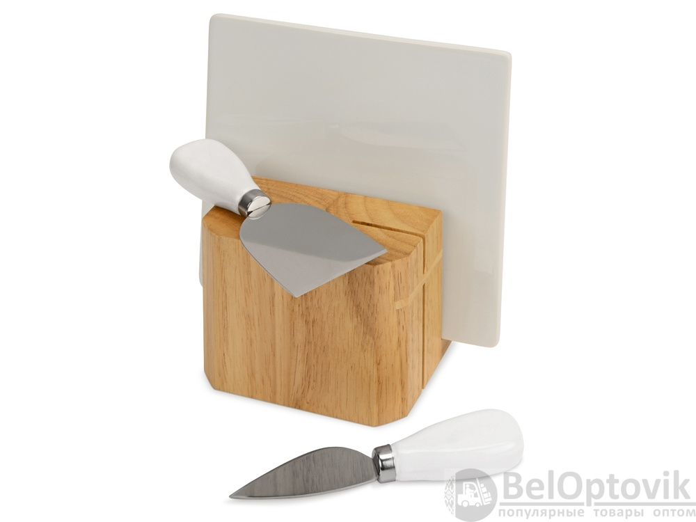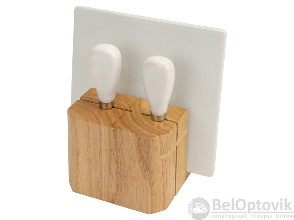 - Цвет товара: ножи- белый/серебристый, доска- белый, подставка- натуральный