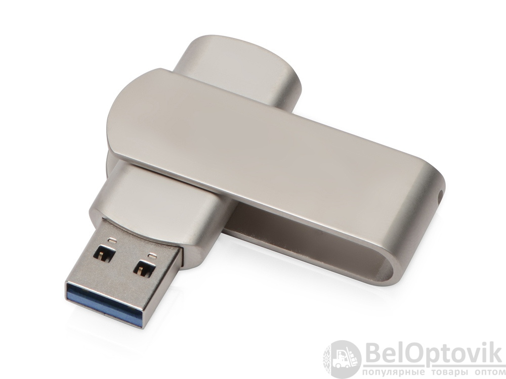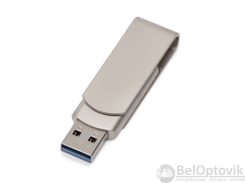 Флешка USB 3.0 с поворотным клипом на 32 Гб. Клип фиксируется в положениях на 90° и 180° градусов в обе стороны. Металлический матовый корпус. В клипе имеется отверстие под цепочку.