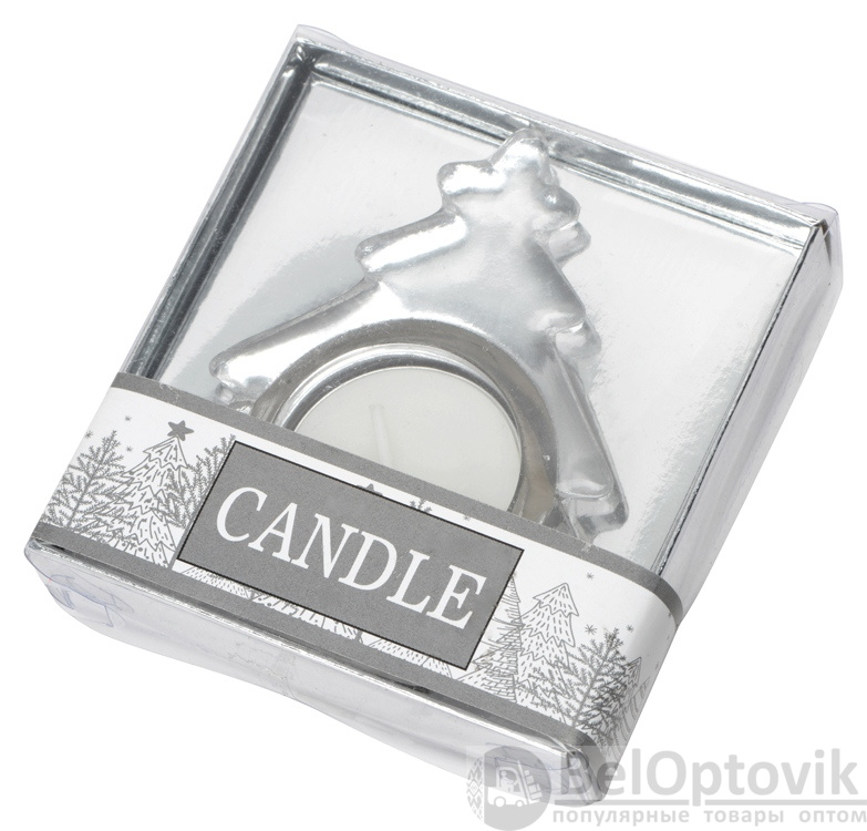 Подсвечник в виде новогодней елочки. Подходит для стандартных свечей - таблеток. Одна свеча в комплекте.