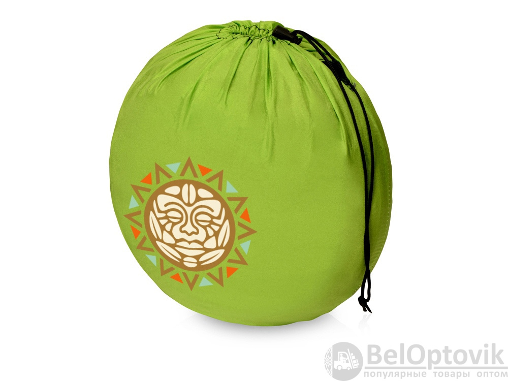Гамак легко закрепляется на деревьях или каких-либо опорах, с помощью карабинов и веревок, которые идут в комплекте. Легко складывается в индивидуальный мешок, на котором отлично будет смотреть логотип или корпоративный слоган.