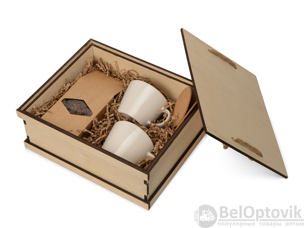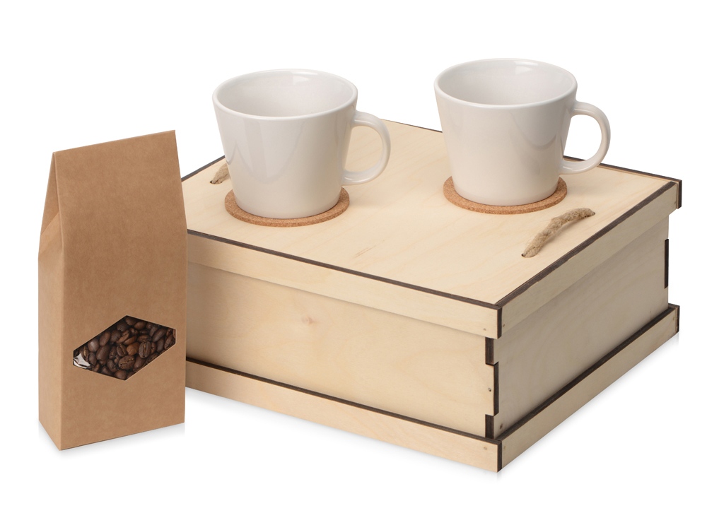 - Цвет товара: чашки- белый, костеры- светло-коричневый, коробка- натуральный