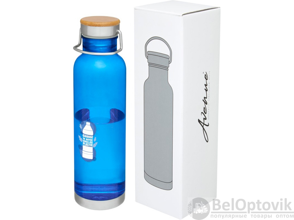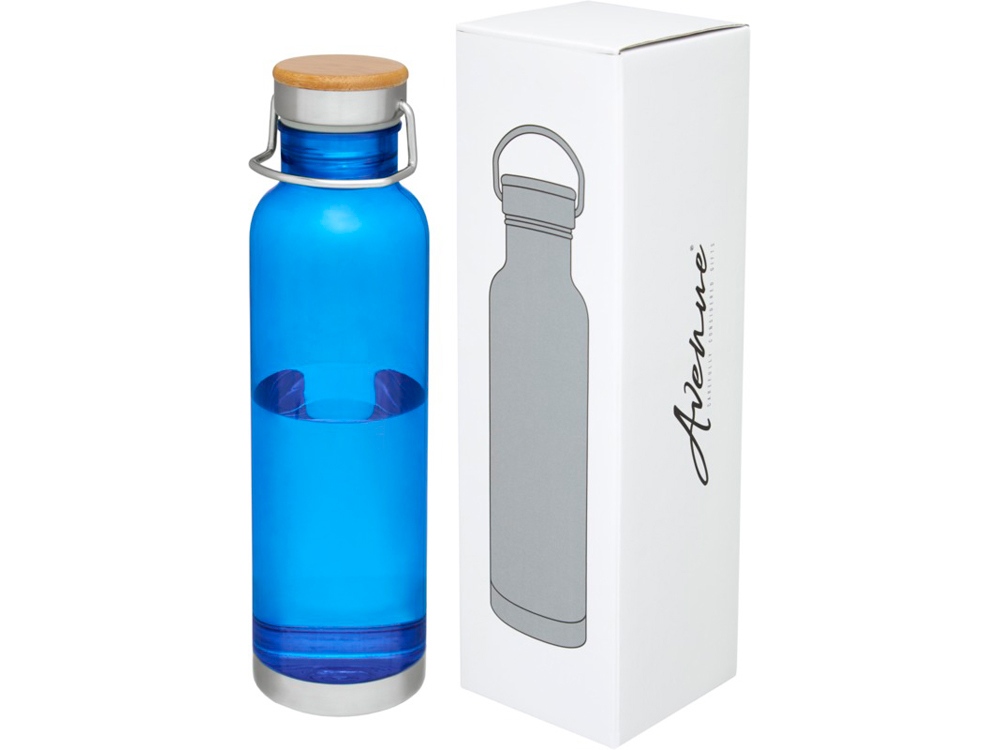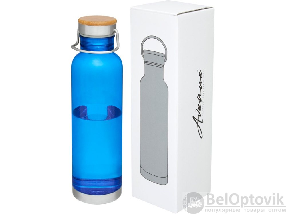 Спортивная бутылка с одинарными стенками из прочного материала от Tritan™. Устойчива к ударам, не пачкается и не пропускает запахи. Имеет съемную крышку с бамбуковым колпачком и ручку для удобной переноски. Без содержания БФА. Объем 800 мл. Представлена в подарочной коробке Avenue.