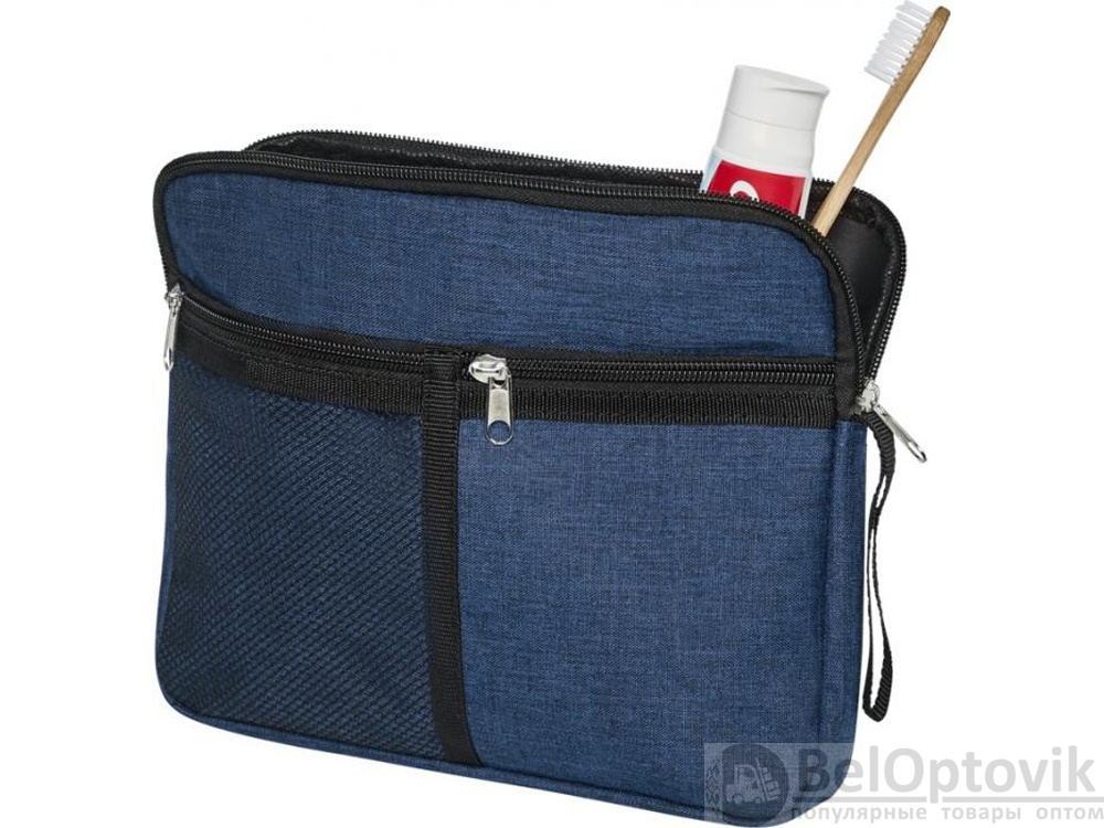 Косметичка- несессер для туалетных принадлежностей с основным отделением на застежке-молнии, оформленная с эффектом меланжевой расцветки. Имеет два передних небольших кармана (1 сетчатый и 1 обычный).