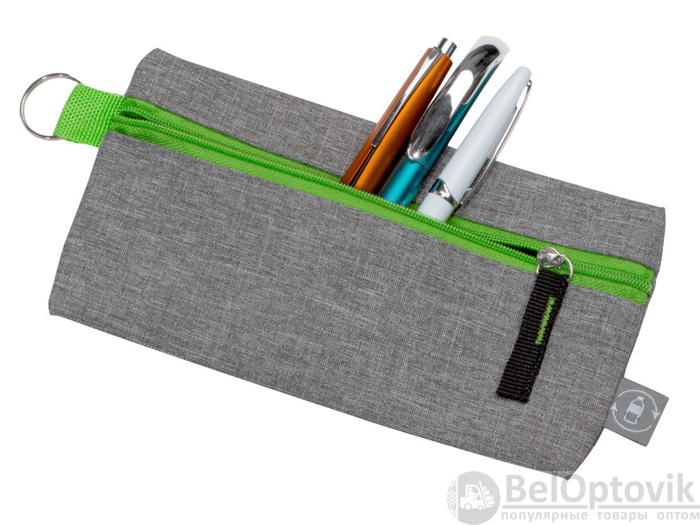 Вместительный универсальный пенал из переработанного материала. Благодаря внутренней подкладке внутрь не попадает вода, что не допускает промокания канцелярских принадлежностей. Молния зеленого цвета делает его визуально более интересным и ярким.