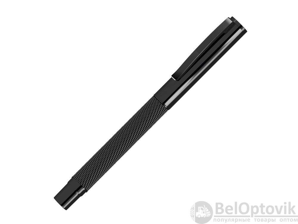 Металлический роллер, покрытый глянцевым лаком, с ремешком из настоящей сетки вокруг корпуса.