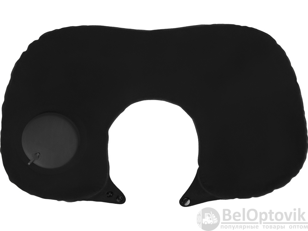 На обратной стороне от насоса-помпы находится клапан для сдувания воздуха из подушки. Двухуровневая фиксация кнопками позволит выбрать наиболее комфортное положение на шее. В комплекте идет чехол на завязках для хранения и удобной транспортировки.