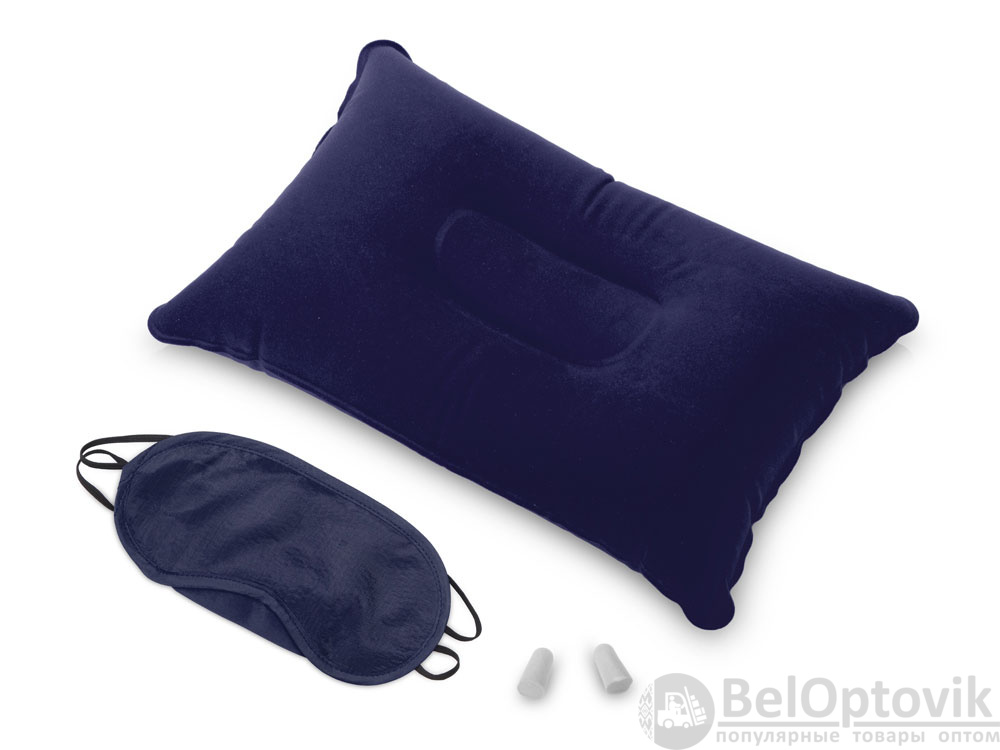 - Комплектность: надувная подушка 34 х 23 х 1,4 см, маска для глаз 19 х 9 х 0,2 см, беруши d1,3 х 2.3 см - 2шт, мешочек 14 х 16 х 0,2 см