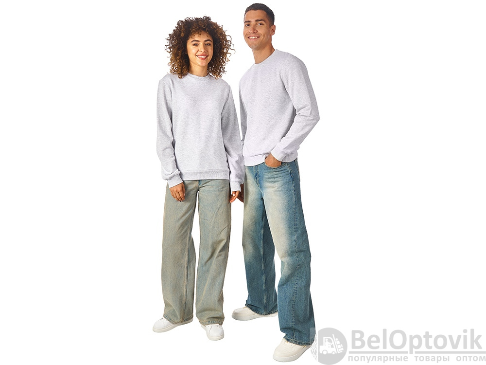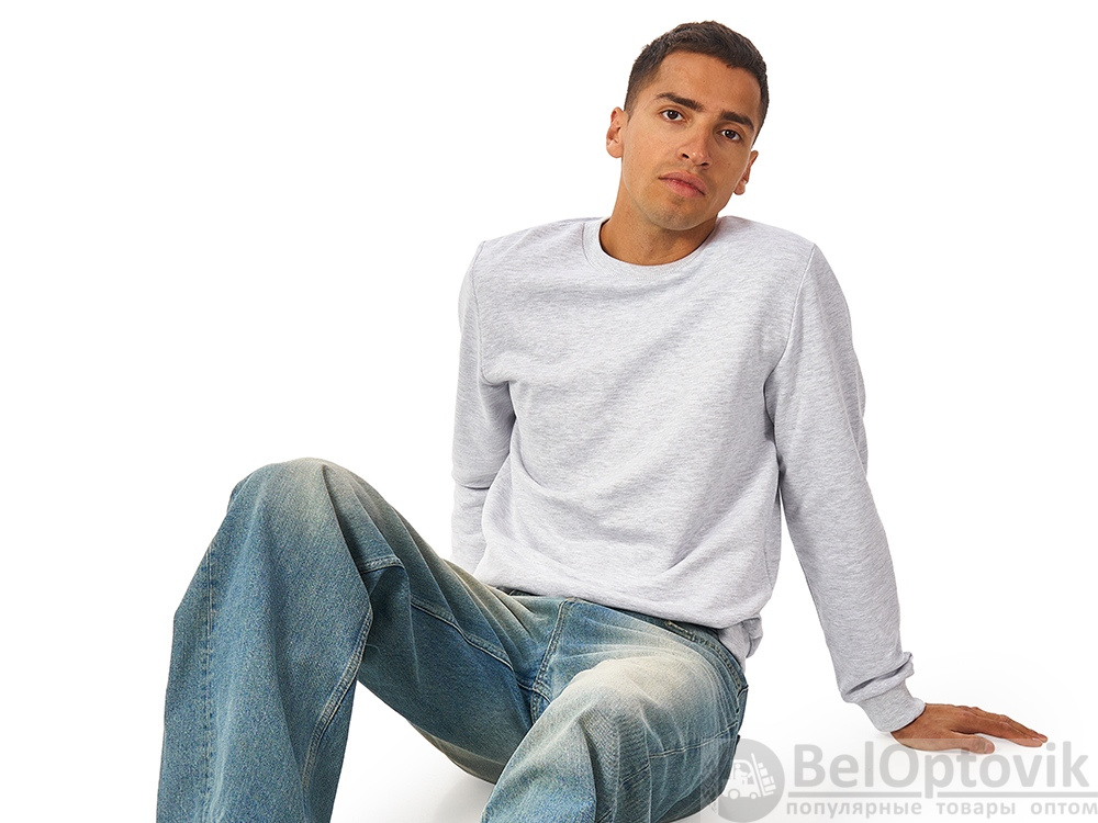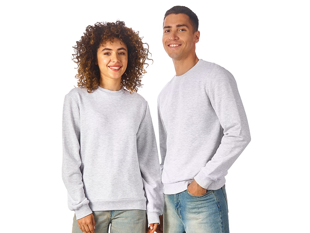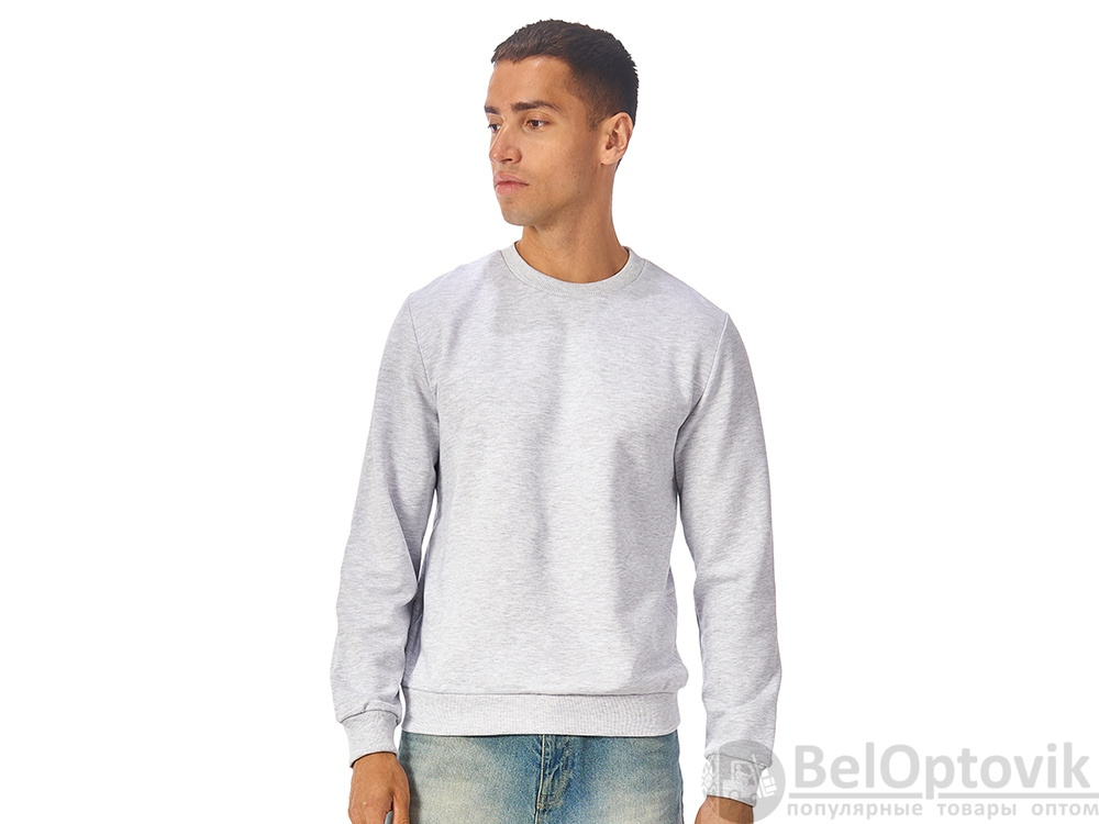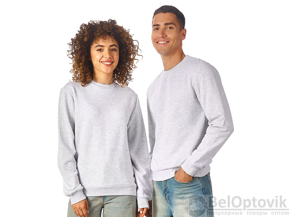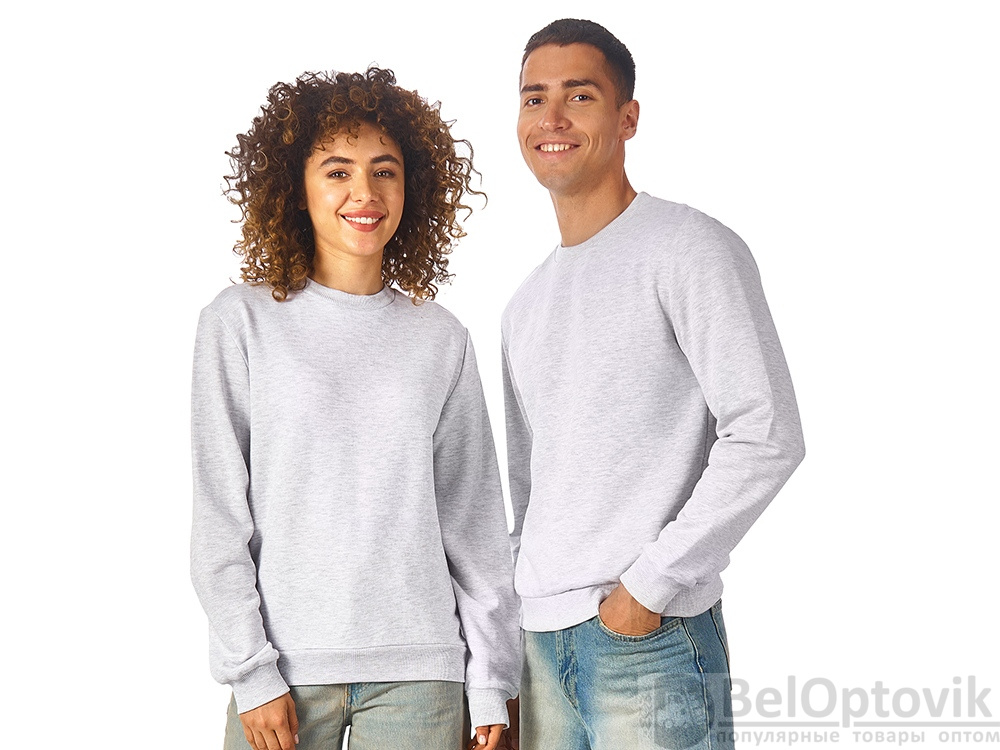 Свитшот из плотного 3х ниточного хлопкового футера. Горловина, манжеты и низ отделан рибом 2х2. Горловина спинки внутри дополнительно укреплена тесьмой с выработкой елочка. Полотно из утяжеленного хлопкового футера внутри с петельками без начеса.