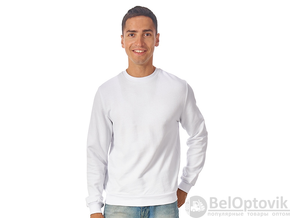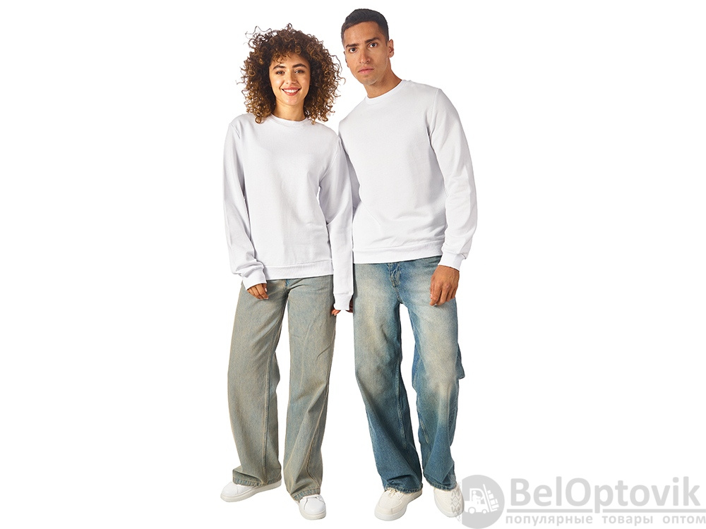 Свитшот из плотного 3х ниточного хлопкового футера. Горловина, манжеты и низ отделан рибом 2х2. Горловина спинки внутри дополнительно укреплена тесьмой с выработкой елочка. Полотно из утяжеленного хлопкового футера внутри с петельками без начеса.