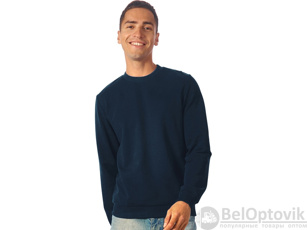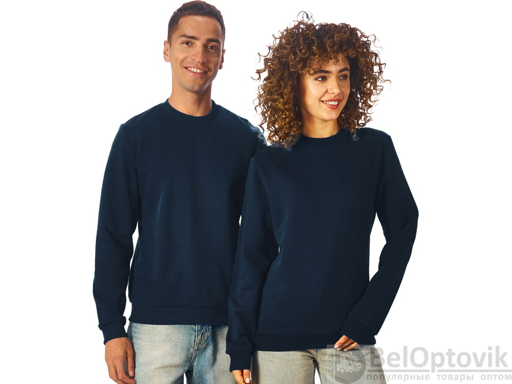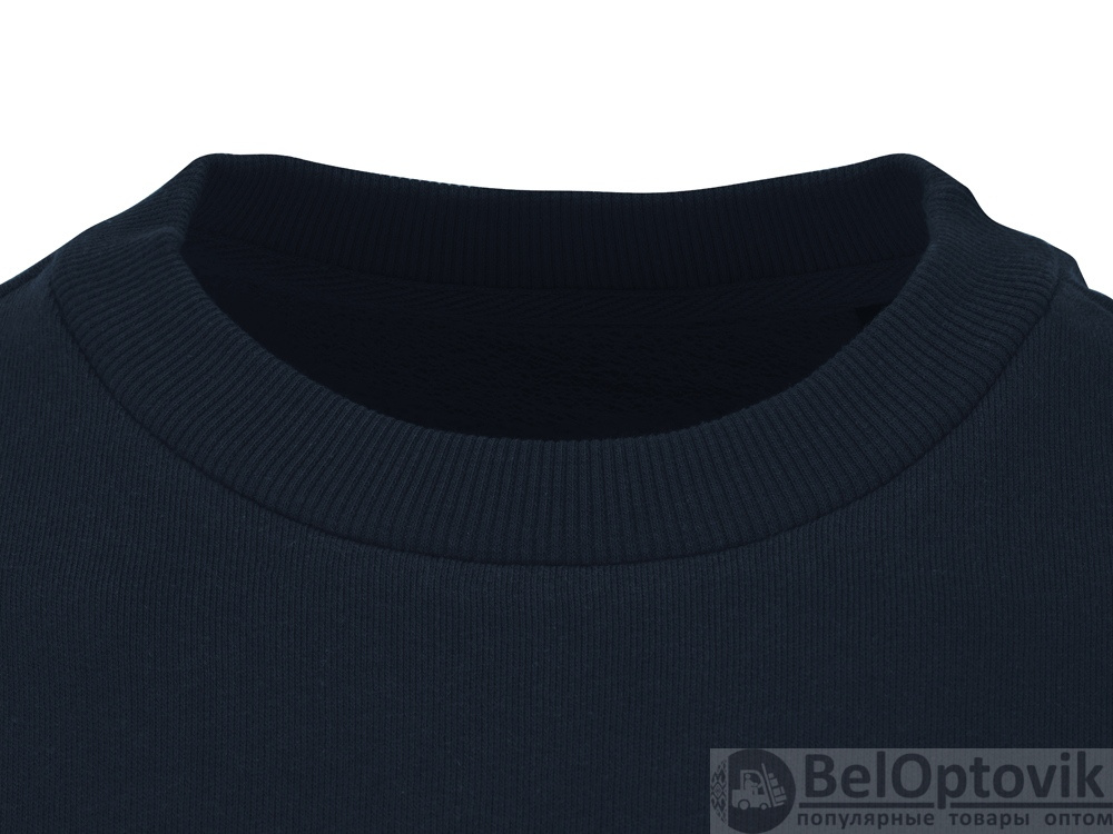 Свитшот из плотного 3х ниточного хлопкового футера. Горловина, манжеты и низ отделан рибом 2х2. Горловина спинки внутри дополнительно укреплена тесьмой с выработкой елочка. Полотно из утяжеленного хлопкового футера внутри с петельками без начеса.