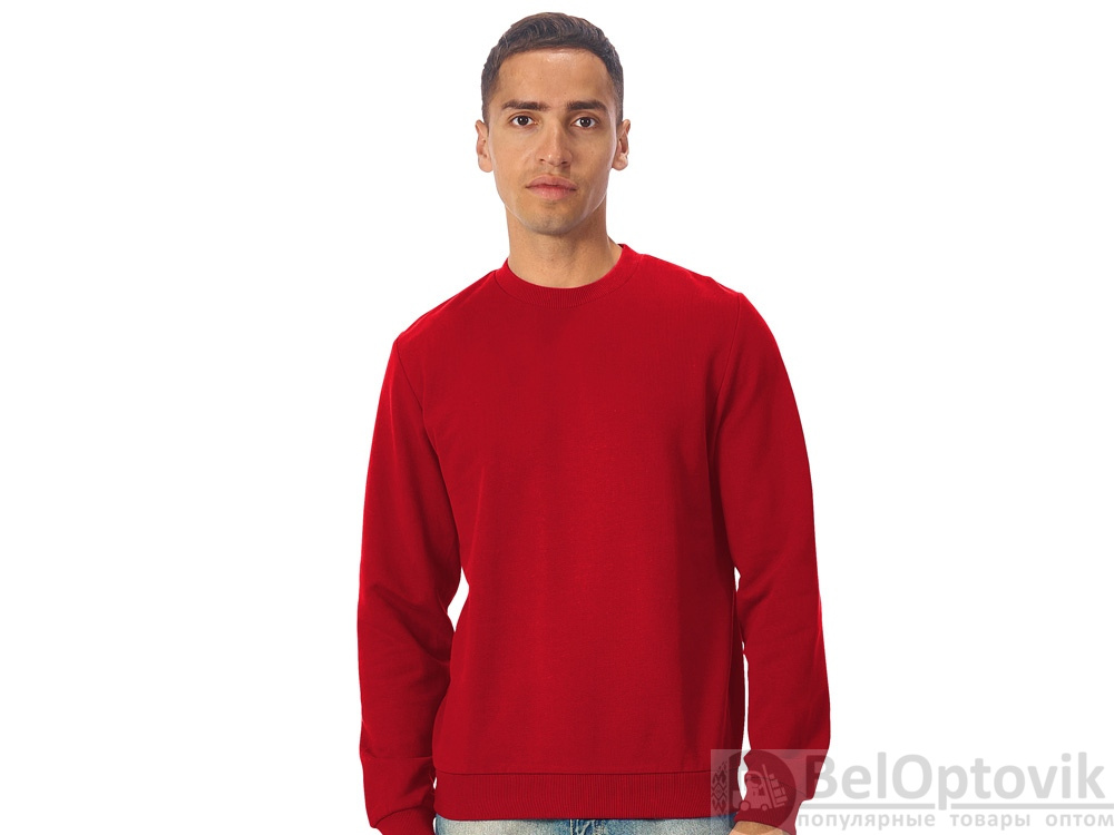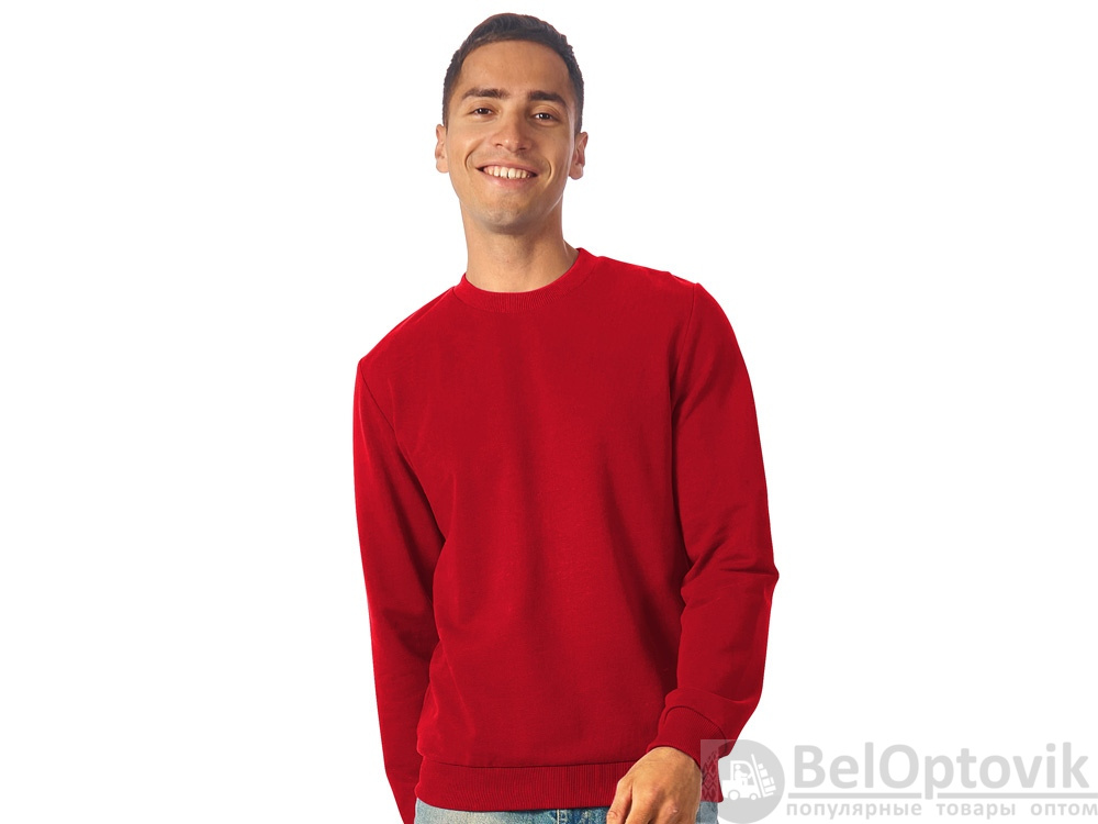 Свитшот из плотного 3х ниточного хлопкового футера. Горловина, манжеты и низ отделан рибом 2х2. Горловина спинки внутри дополнительно укреплена тесьмой с выработкой елочка. Полотно из утяжеленного хлопкового футера внутри с петельками без начеса.