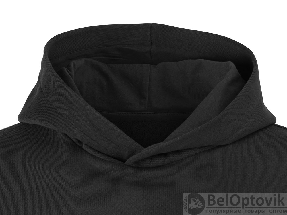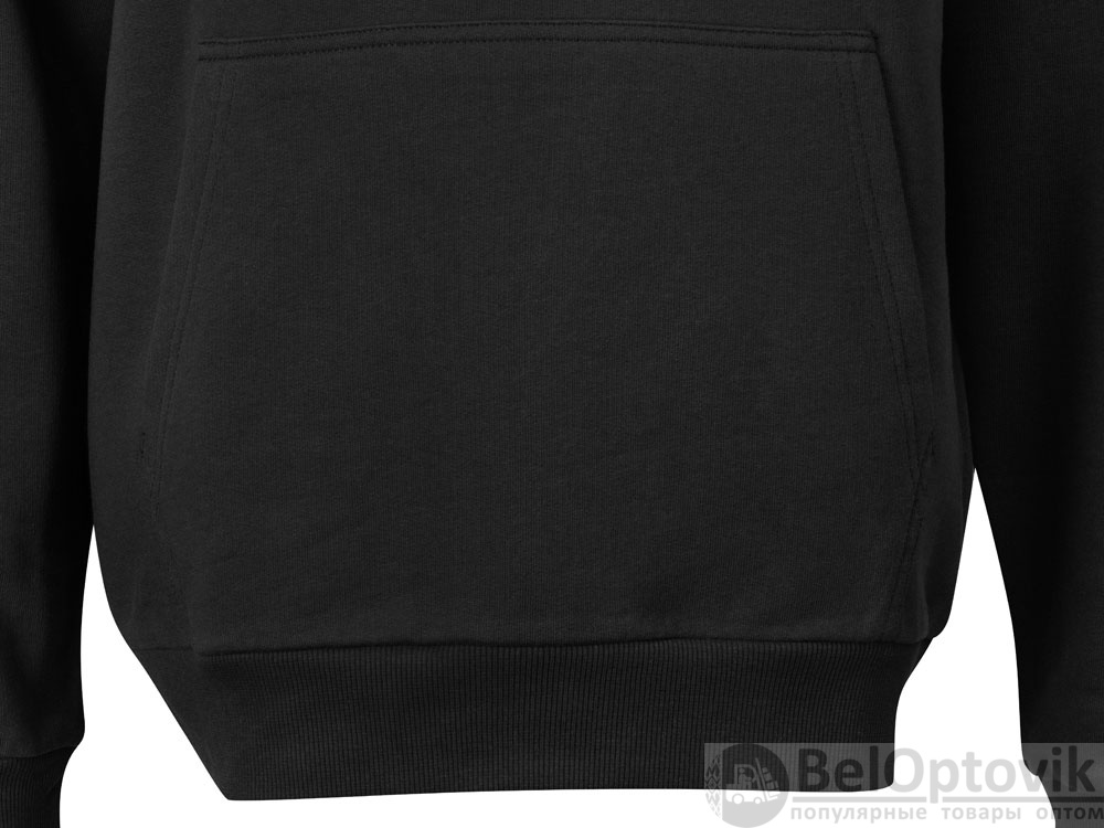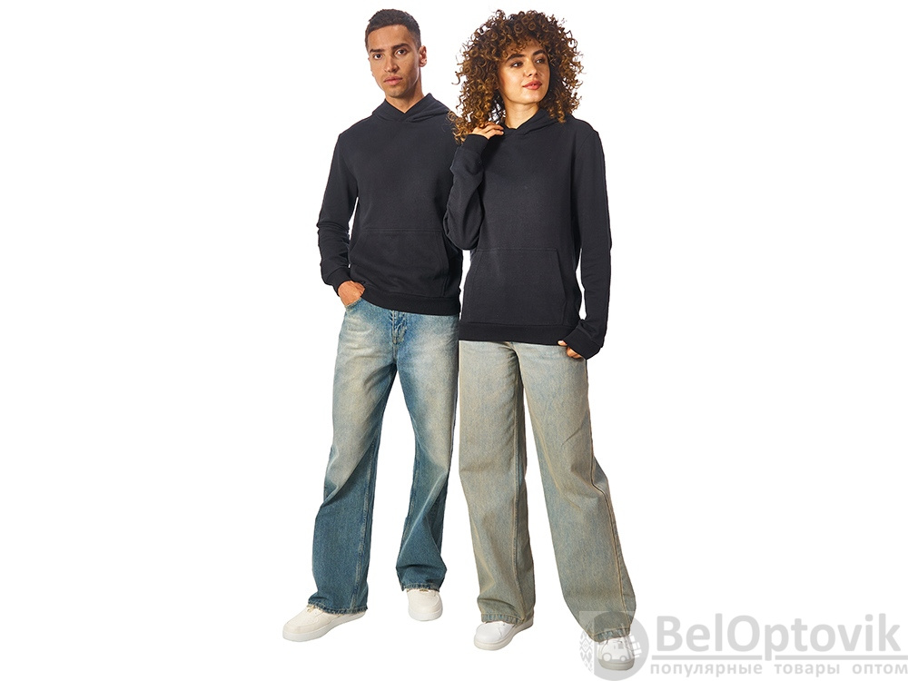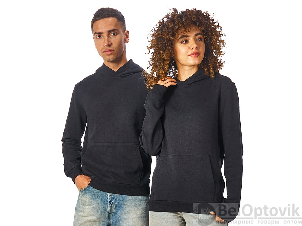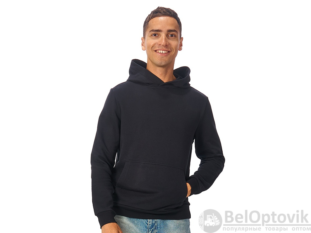 Толстовка с капюшоном (худи) из плотного хлопкового 3х ниточного футера. В капюшоне подкладка в тон, а горловина спинки дополнительно укреплена тесьмой с выделкой «елочка». Капюшон без шнурков – ничего не отвлекает от вашего брендирования. Манжеты и низ изделия отделаны рибом 2х2. Глубокий комфортный карман кенгуру на полочке. Полотно из утяжеленного хлопкового футера внутри с петельками без начеса.