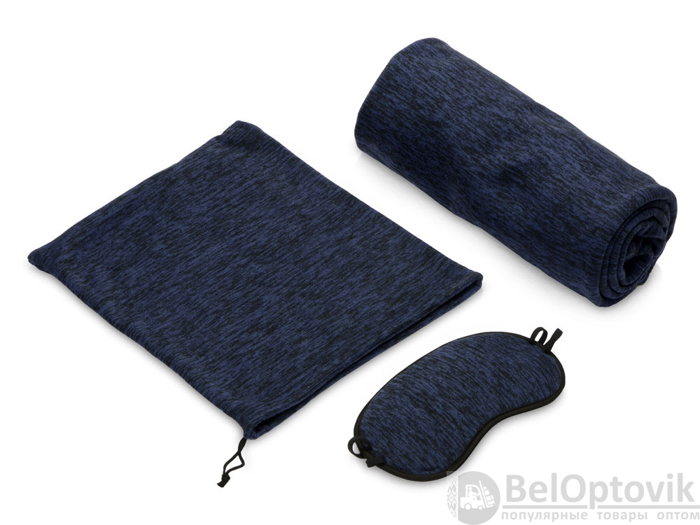 - Комплектность: плед 100 х 75 (±2) см, маска для глаз 18,5 х 9,5 х 0,35 см, мешочек 25 х 26 х 0,3 см