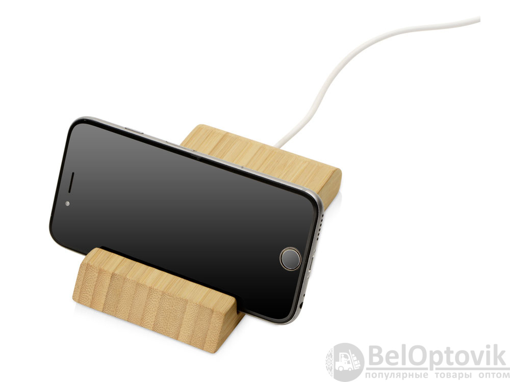 Беспроводное зарядное устройство «Jetty» в корпусе из натурального бамбука поддерживает функцию быстрой зарядки Qi-совместимых моделей смартфонов. Также устройство можно использовать как подставку для смартфона.