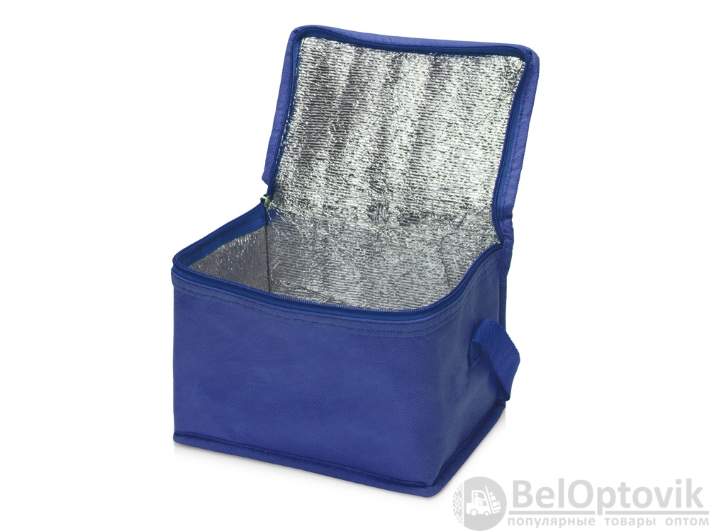 Сумка-холодильник из переработанного пластика. Вмещает 6 банок по 0.33 л. Закрывается на молнию. Удобная ручка для переноски.