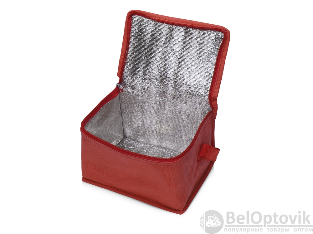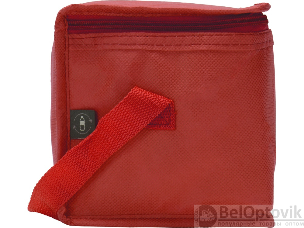 Сумка-холодильник из переработанного пластика. Вмещает 6 банок по 0.33 л. Закрывается на молнию. Удобная ручка для переноски.