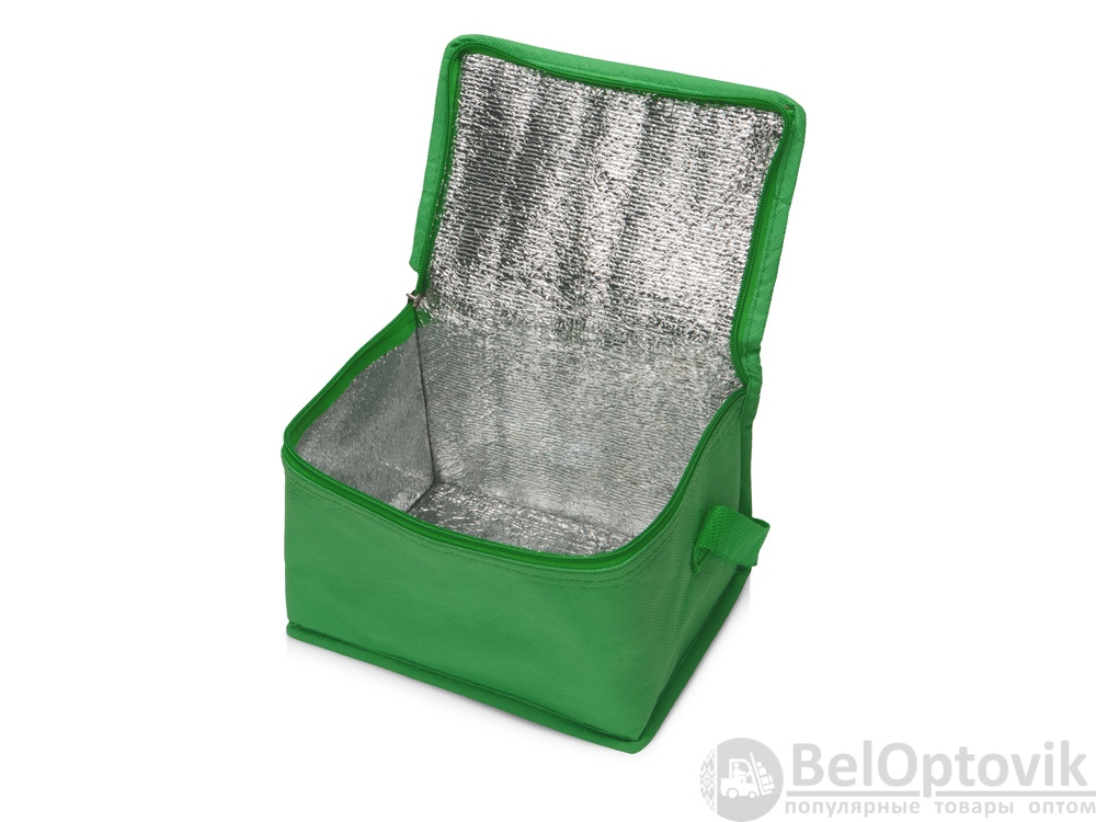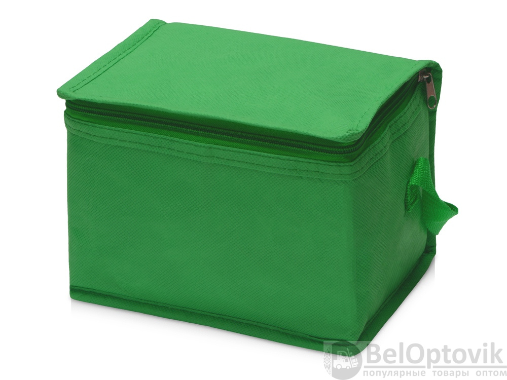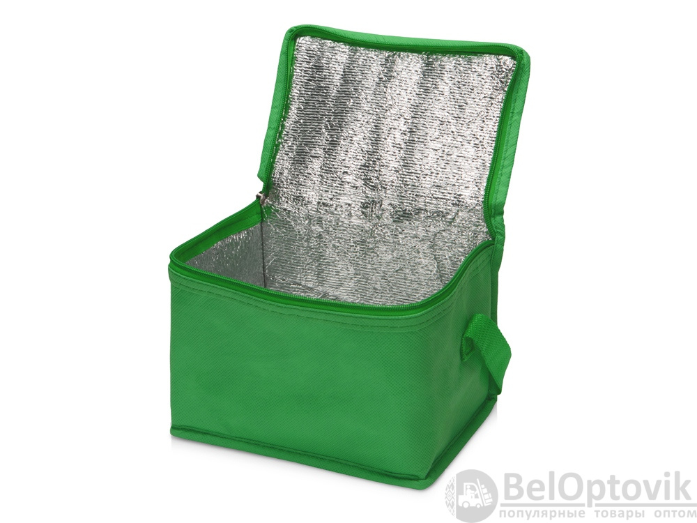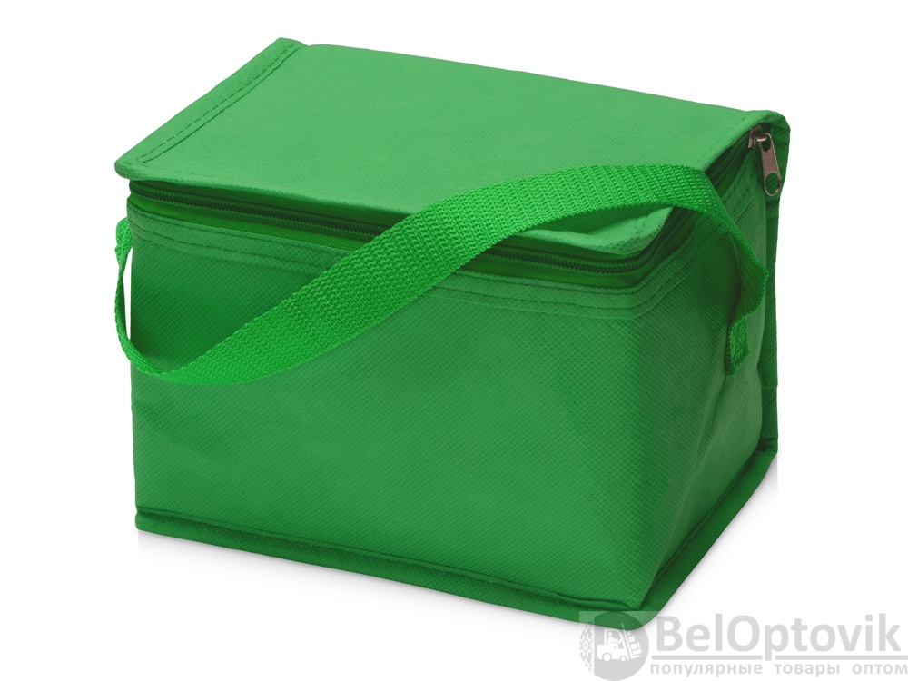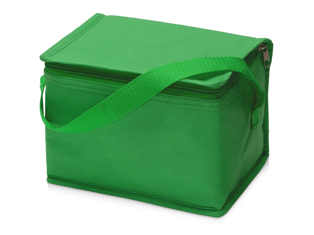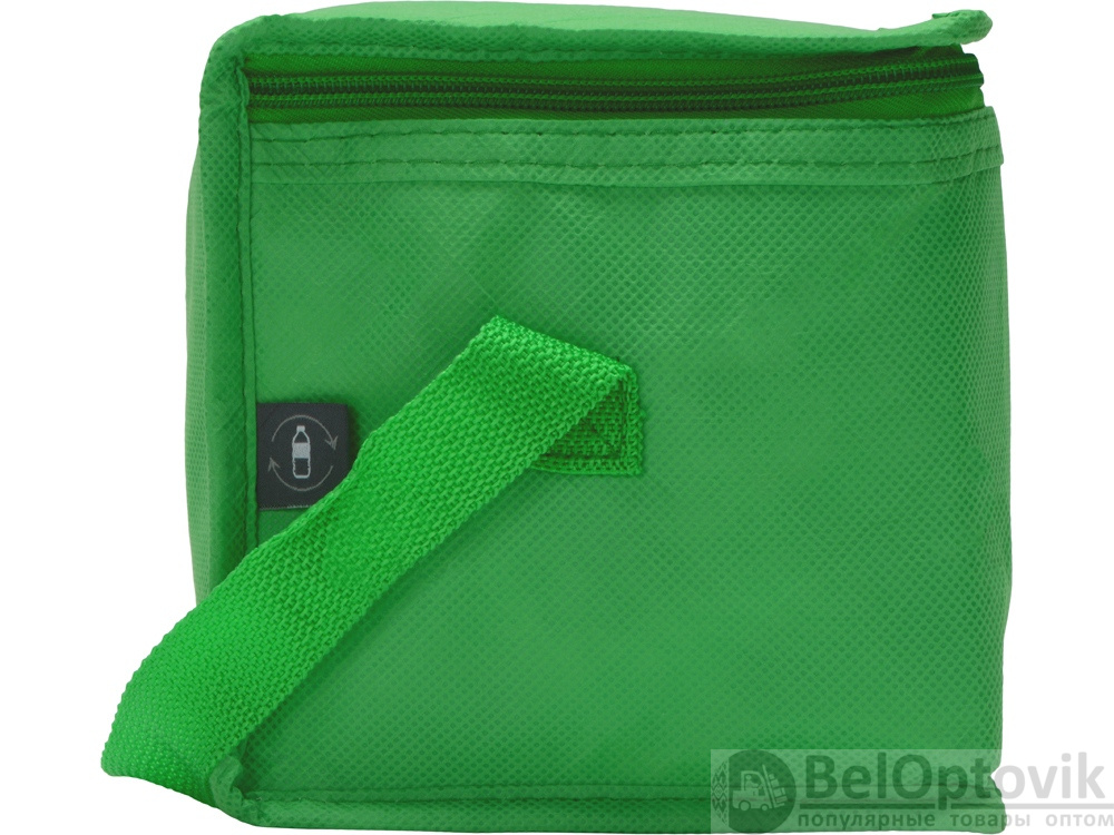 Сумка-холодильник из переработанного пластика. Вмещает 6 банок по 0.33 л. Закрывается на молнию. Удобная ручка для переноски.
